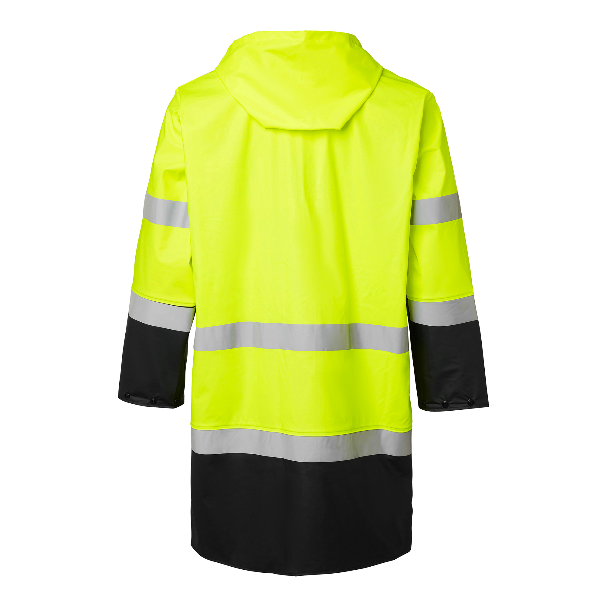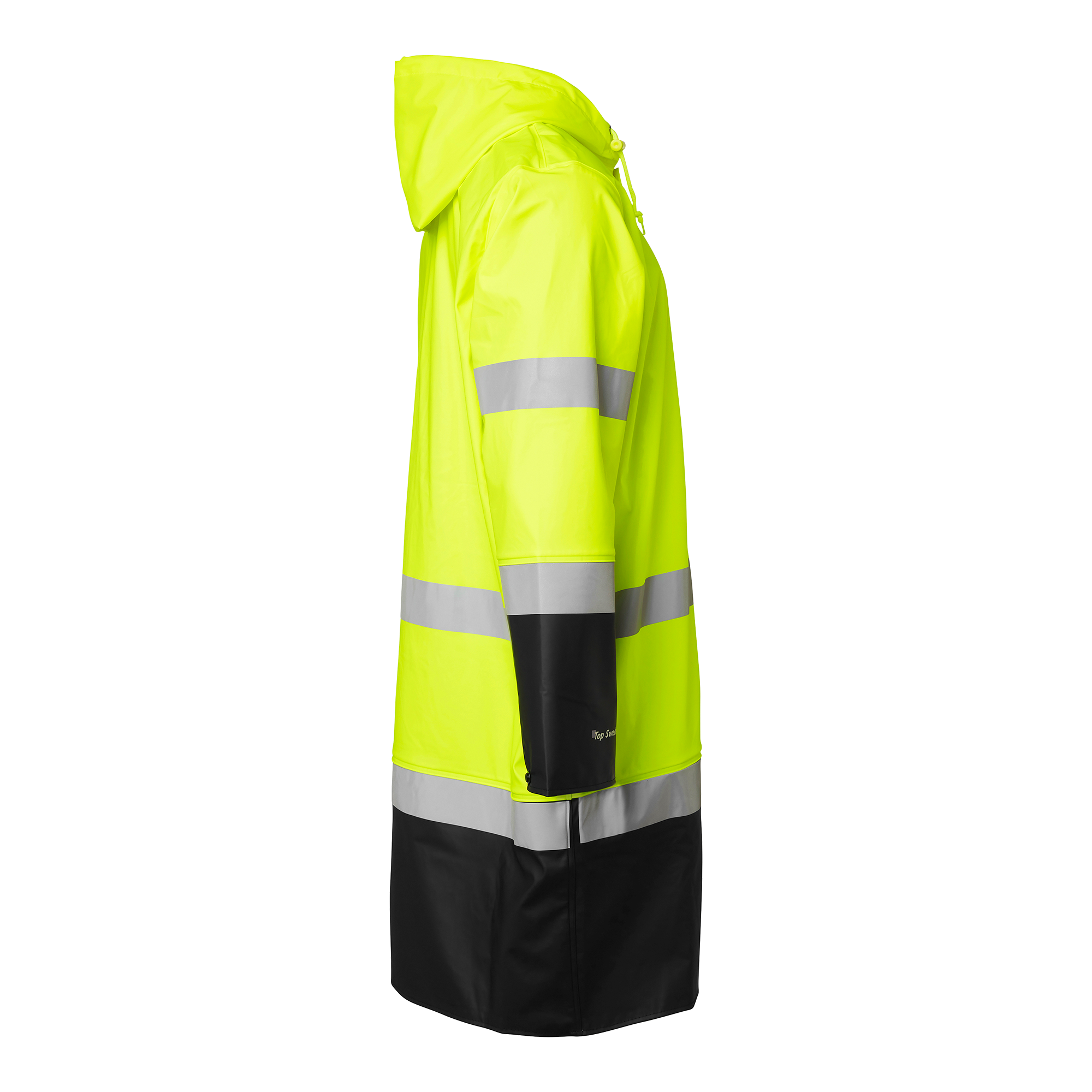 Discover the Top Swede 181 Rain Coat Hi-Vis, a raincoat designed for construction and industrial professionals who require reliable protection and high visibility in rainy conditions. Made from stretch fabric with welded seams, this raincoat ensures you stay dry and comfortable even in the harshest weather conditions. The coat features a zipper with a placket and snaps for extra protection against wetness, as well as a hood with drawstring for an adjustable fit. Adjustable cuffs provide further customization options for optimal comfort. With a length of 100 cm, this raincoat provides extra coverage and protection. The Top Swede 181 Rain Coat Hi-Vis combines durability, functionality and high visibility, making it ideal for a variety of work environments where safety and protection are essential. Choose Top Swede for workwear you can rely on – both at work and outside.