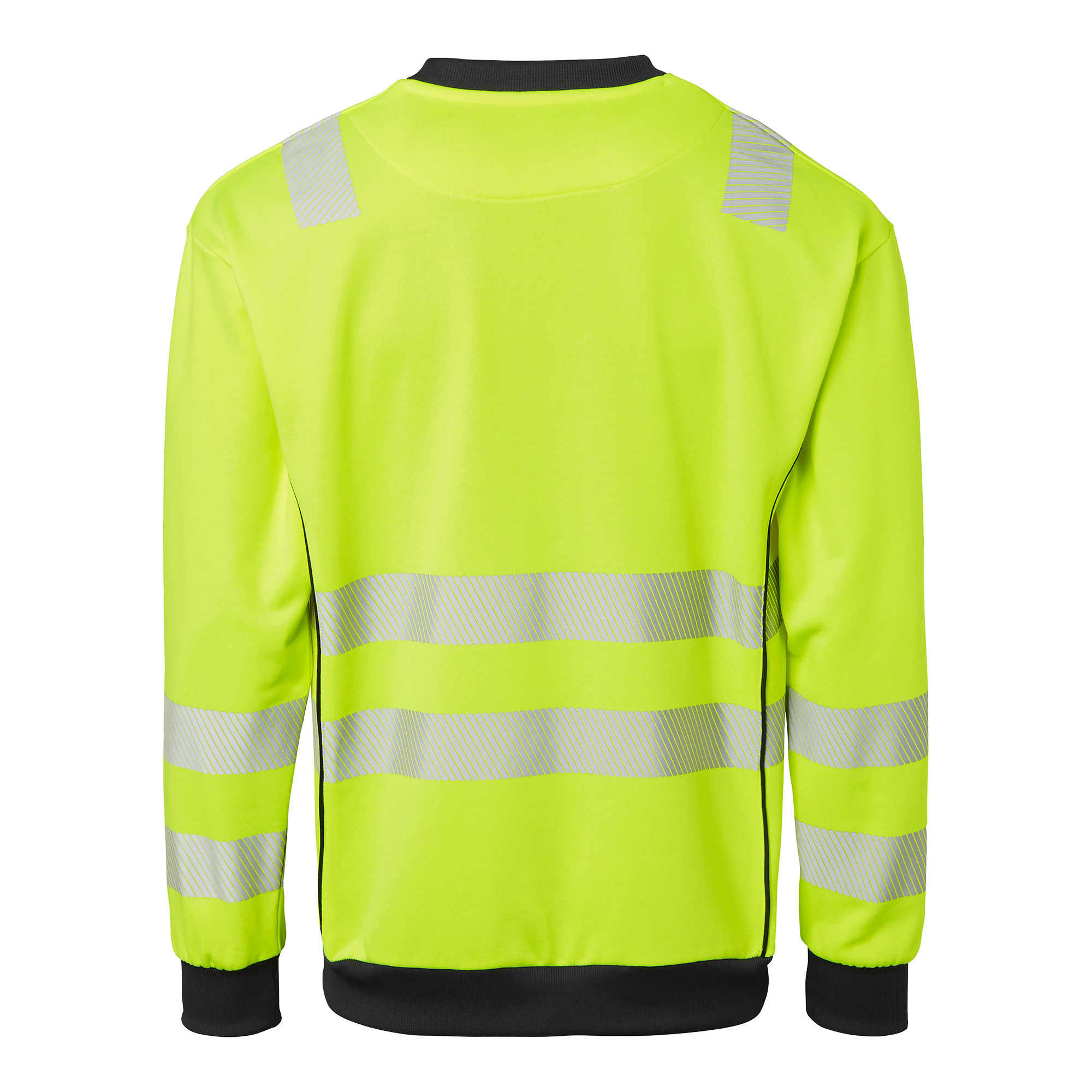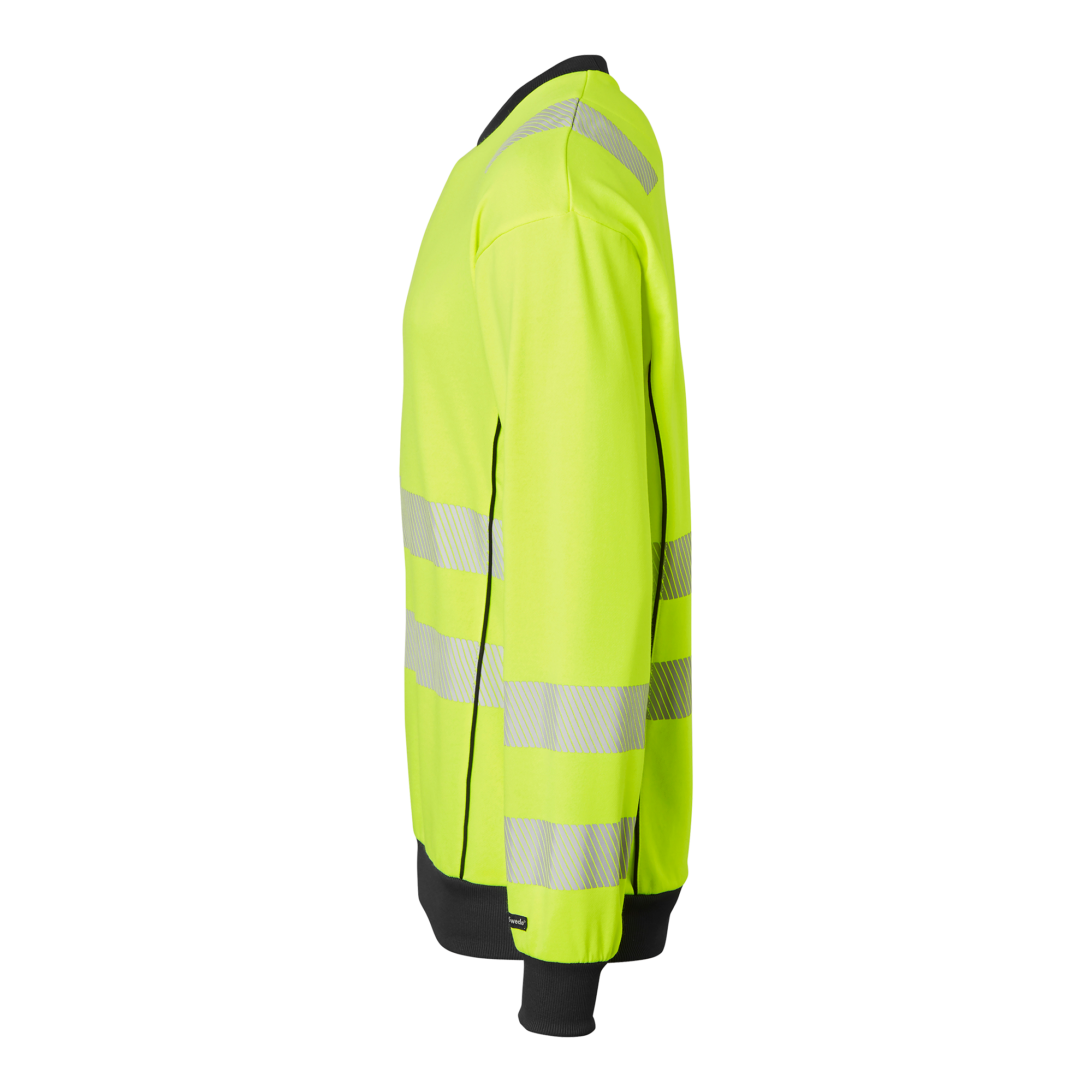 Round neck sweatshirt from Top Swede. Fluorescent color for high visibility. Cuffed hem and cuffs. Ideal for work in construction and industry where safety is crucial.