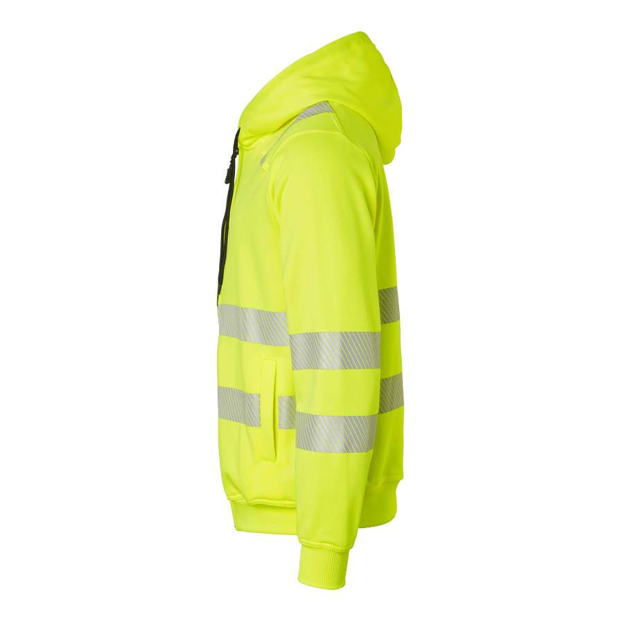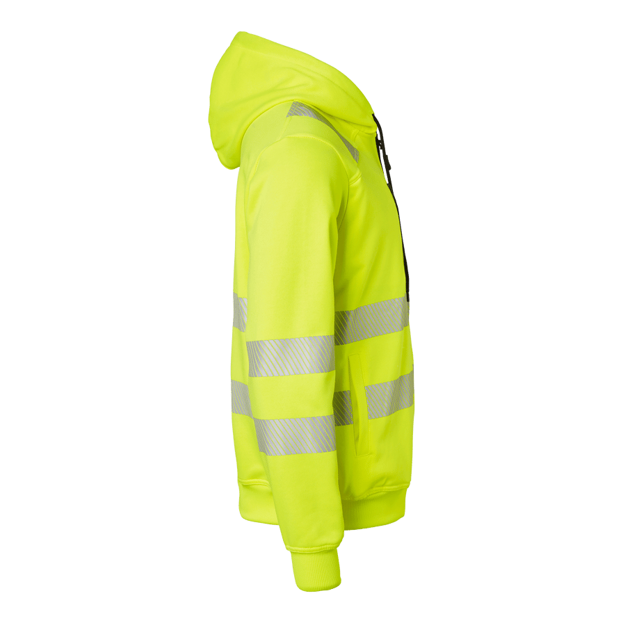 Discover the Top Swedes 271 Sweat, a hooded, fully zippered sweatshirt designed to offer both comfort and safety for construction and industrial professionals. This sweatshirt has two front pockets and a zippered chest pocket, providing plenty of storage space for your belongings. Cut reflex with stretch ensures high visibility and flexibility, while the cuffed hem and cuffs provide a comfortable fit. Made from a durable blend of cotton and polyester, this sweatshirt is ideal for everyday use in demanding work environments. The fluorescent yellow color and reflective details ensure safety and visibility in the workplace. Choose the 271 Sweat for a combination of durability, functionality and comfort that will help you stay visible and safe at work.