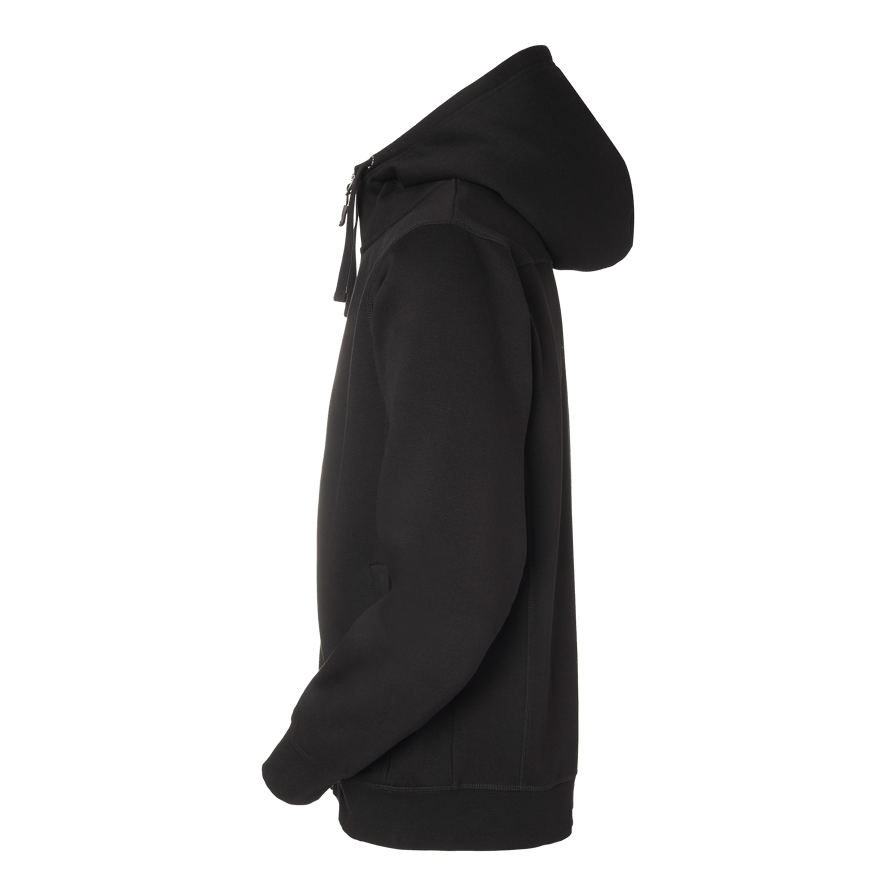 College jacket with brushed inside, diverging side panels and two spacious front zippered pockets. Hood with high neck and drawstring for adjustable fit. Elastic cuffs at hem and cuffs. Some colors have increased visibility.
