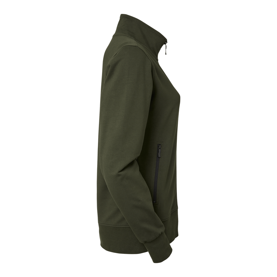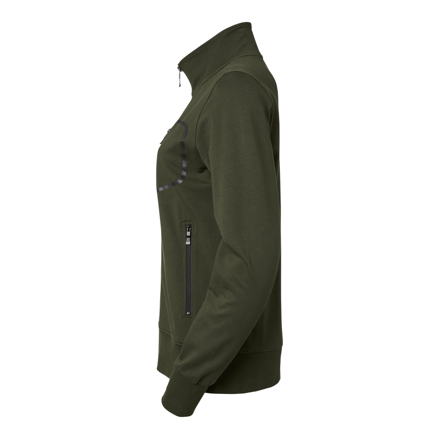 The Nicole Sweat w from South West is a stylish college jacket designed for women, with a figure-hugging women's fit that provides both style and comfort. Made from a thin and stretchy quality of organic cotton (in transition) and elastane, this jacket offers a soft and supple feel. It has a full zipper and a stand-up collar for extra protection and warmth. Practical side pockets and a zippered chest pocket make the jacket functional, while the embossed logo patches on the zippers add a sophisticated touch. Perfect for both work and play, the Nicole Sweat w is suitable for women looking for a durable garment that combines modern design with high comfort.