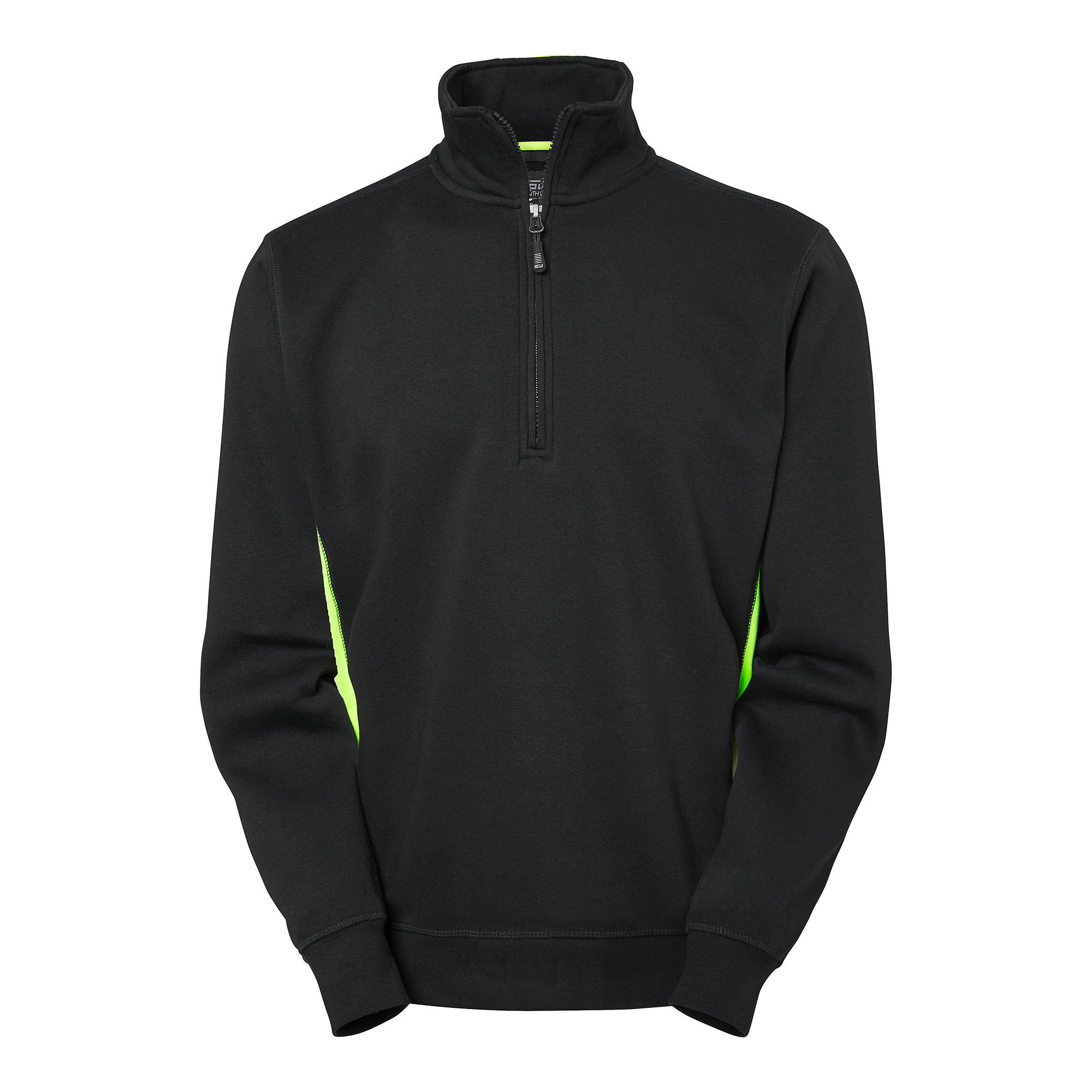 College sweater with brushed inside, stand-up collar and short zipper at the neck. Deviating panels on the side and elastic cuffs at the hem and cuffs. Some colors have increased visibility.