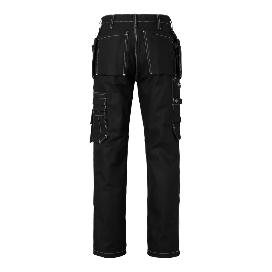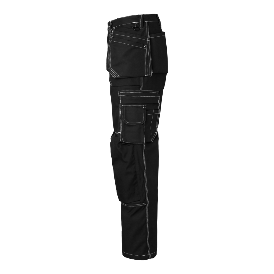 Craftsman trousers with pre-curved legs and knee pockets in CORDURA®. Two front pockets, two back pockets with bellows, and loose hanging nail pockets reinforced with CORDURA®. Several practical extra pockets, including a ruler pocket and phone pocket.