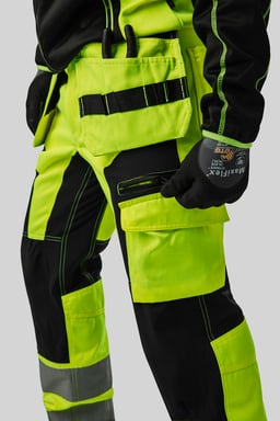 Discover the Top Swede 236 Craftsmen Trousers, the ultimate craftsman pants for construction and industrial professionals. These pants combine a modern fit with advanced 4-way stretch technology, providing superior comfort and freedom of movement. CORDURA® stretch panels with Coolmax® are strategically placed in the crotch, thigh, upper leg, front knee and back knee to maximize all-day mobility and comfort. The Coolmax® fiber effectively wicks away moisture, keeping you cool and dry in intense working conditions. The trousers have pre-curved legs and knee pockets made of CORDURA® stretch, where the knee pads can be placed in two levels. With two front pockets, two reinforced rear pockets with bellows and loose nail pockets with extra compartments and tool loops, these trousers offer exceptional functionality. A protruding ruler pocket, equipped with two knife holders, a knife loop and a pen pocket, as well as a zippered leg pocket and a lidded phone pocket, provide additional storage options. Adjustable hammer handle and D-ring increase practicality. Top Swede is known for its durable workwear that combines functionality with modern design. 236 Craftsmen Trousers are perfect for those looking for reliable and comfortable garments for demanding work environments. Choose Top Swede for workwear that lives up to your highest expectations – only the best is good enough.