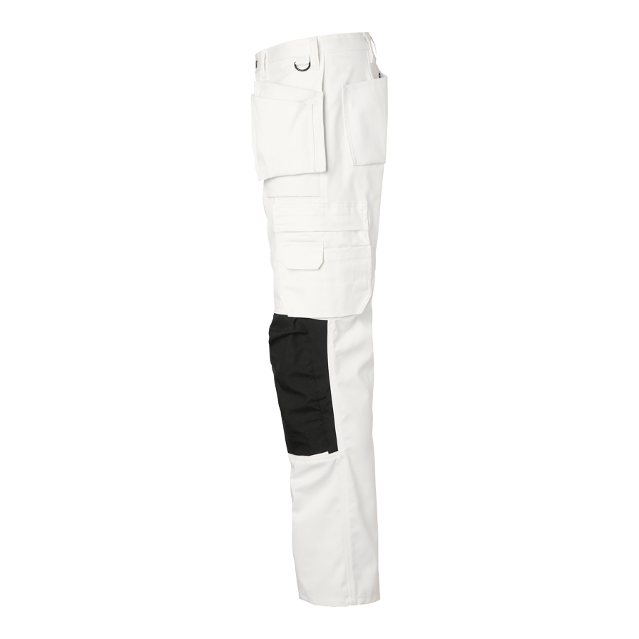 Painter's trousers with pre-curved legs and knee pockets in CORDURA®. Several pockets including hanging pockets and leg pocket with hidden zipper. Adjustable hammer hook and D-ring. Ideal for painting professionals.