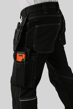 Discover Top Swedes 306 Craftsmen Trousers, the ultimate craftsman pants for construction and industrial professionals. These trousers offer a modern fit and are made from 4-way stretch fabric for maximum freedom of movement and comfort. They have pre-curved legs and knee pockets made of durable Cordura®, making them ideal for tough working environments. The knee pads can be positioned in two levels for extra comfort and protection. The trousers are equipped with two front pockets, two reinforced back pockets with bellows, and loose-fitting nail pockets reinforced with Cordura®, which include three extra compartments and tool loops. An ID card pocket and an adjustable hammer handle make them extra practical. The advanced thumbstick pocket, dropped at the bottom for better comfort, is equipped with two knife holders, a knife loop and a pen pocket. In addition, there is a zippered leg pocket, large extra pocket and phone pocket. Reflective details at the back increase visibility and safety. Choose 306 Craftsmen Trousers for a combination of durability, functionality and comfort that meets the highest standards in workwear.