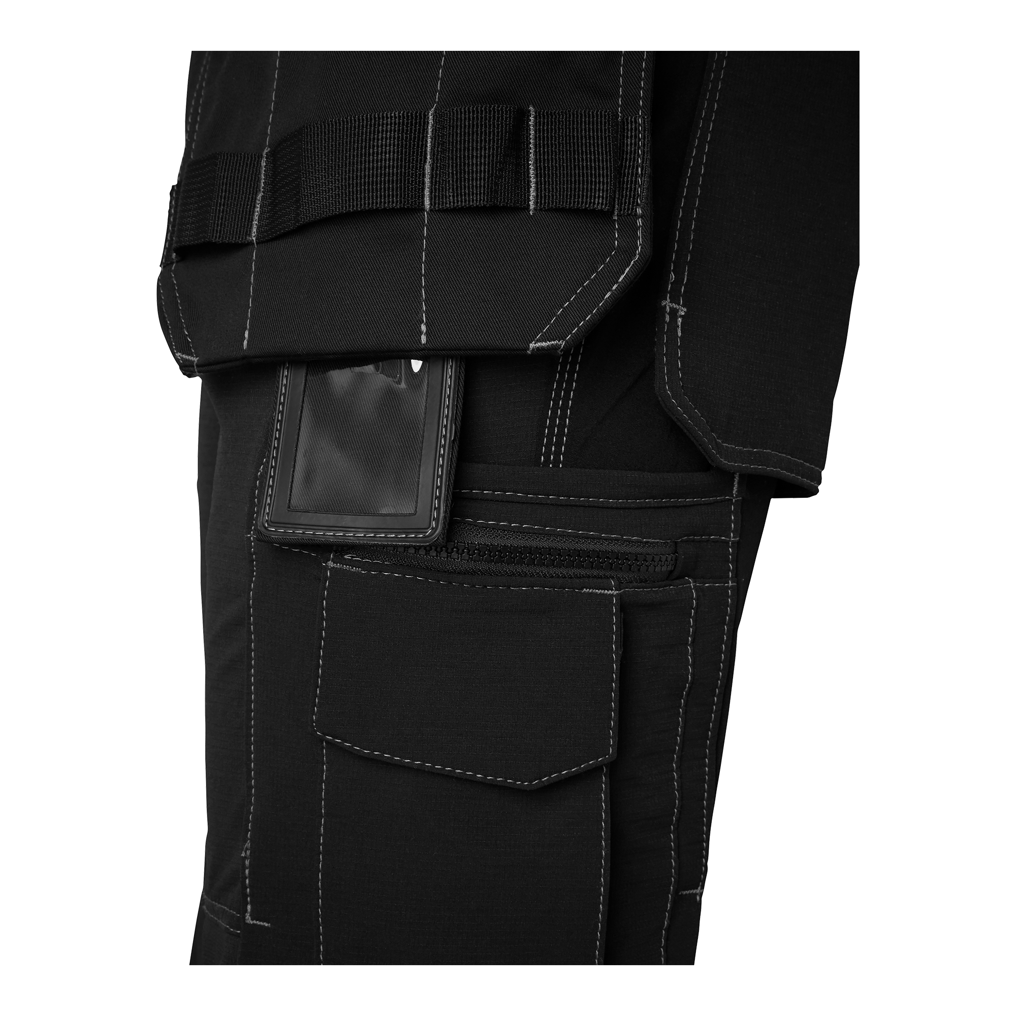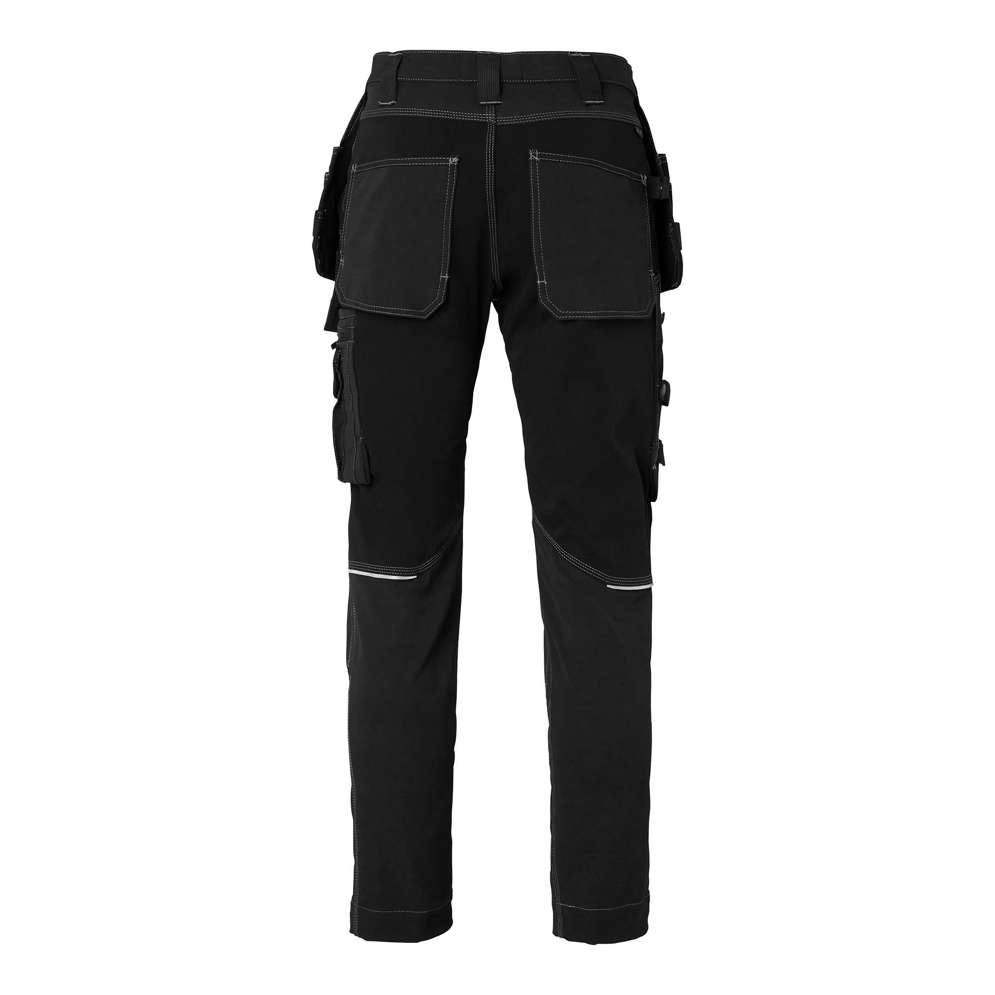 Craftsman trousers in 4-way stretch with pre-curved legs and Cordura® knee pockets. Two front pockets, reinforced back pockets, loose hanging nail pockets with extra compartments, zippered leg pocket and reflective detail at the back. Ideal for demanding work environments.