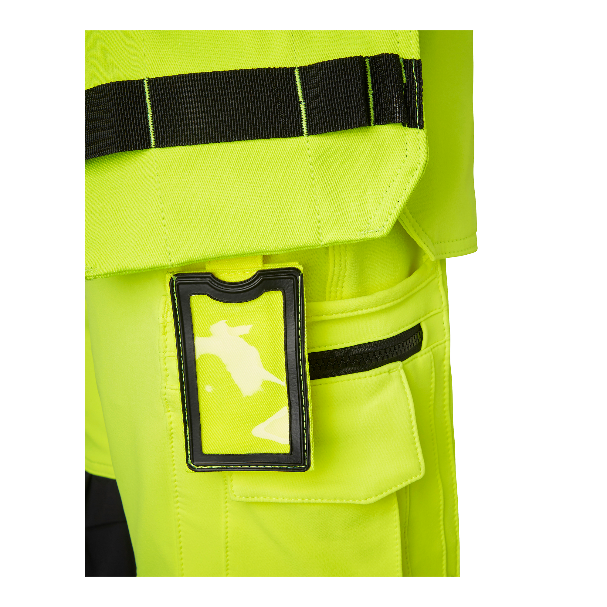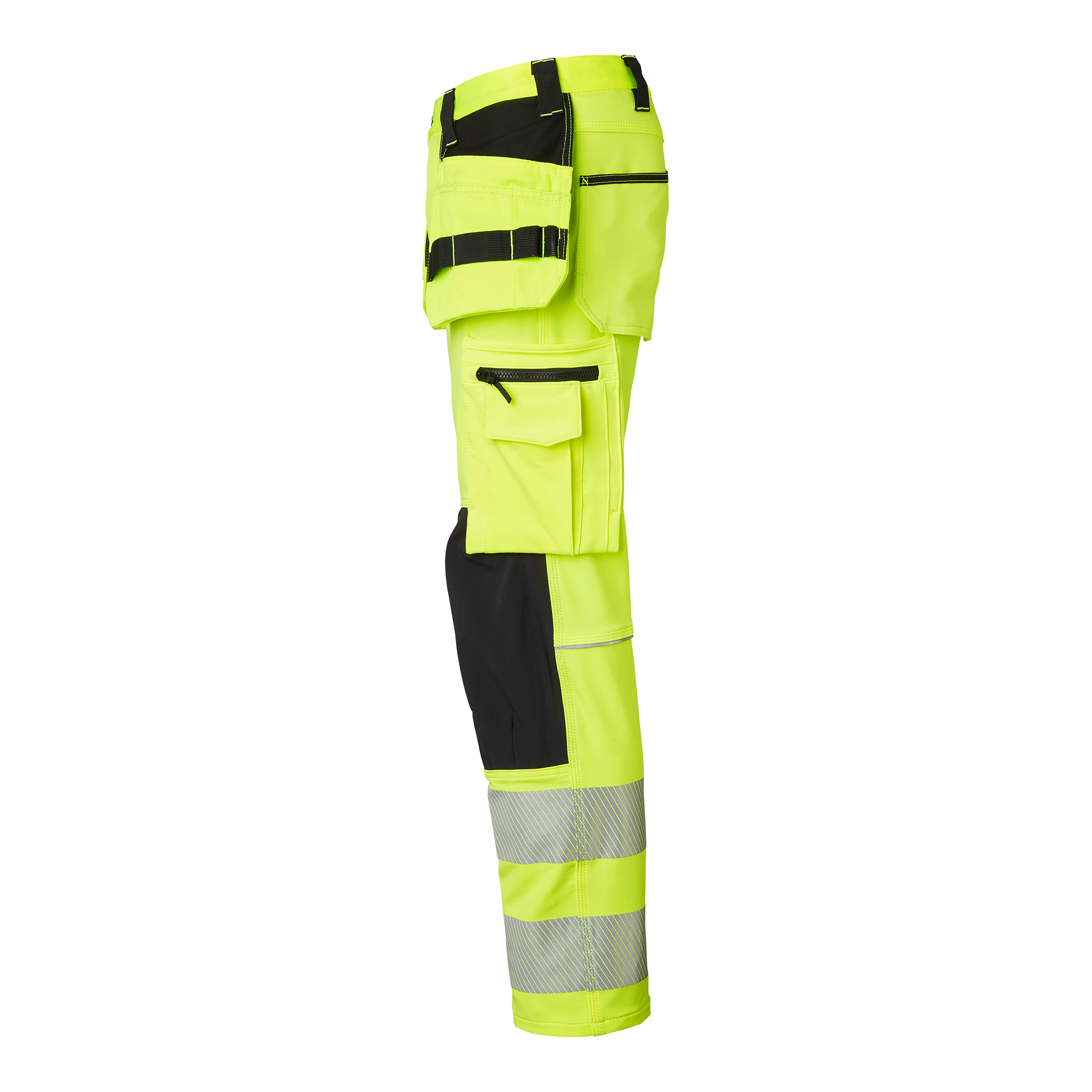Craftsman pants with a modern fit and 4-way stretch. Pre-curved legs and knee pockets made of Stretch Cordura®. Multiple pockets including nail pockets and zippered leg pocket. Reflective details for increased visibility. Ideal for demanding work environments.