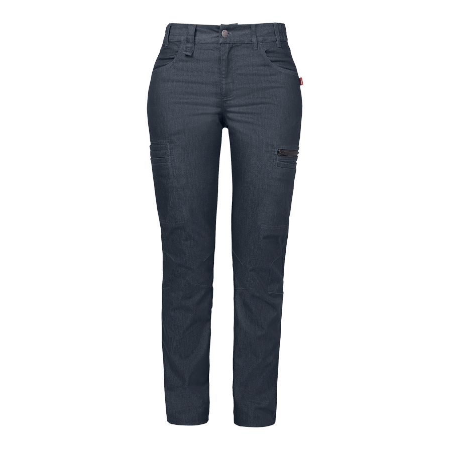 The Fia Trousers from South West are a sturdy and comfortable women's denim pant, designed for professionals who need durable workwear with a feminine touch. The pants have a stretch quality that provides optimal freedom of movement and a perfect fit, while the garment-washed finish provides a soft and comfortable feel. They are equipped with two front pockets, patch back pockets and a double zippered leg pocket and mobile phone pocket on the left leg, providing ample space for storing work tools and personal items. On the right leg there is a double passport pocket and a pen pocket for additional storage options. The fixed waistband with elasticated sides provides extra comfort, and the trousers also have belt loops and a key holder for secure storage. The fly has a zipper and button for a secure closure. Cut-outs at the knee provide increased mobility and comfort during long working days. Fia Trousers are available in several inch sizes and three different inseam lengths (30", 32", 34"), making it easy to find the perfect fit. South West's commitment to quality and durability makes these pants an excellent choice for women who demand both style and function in their workwear.