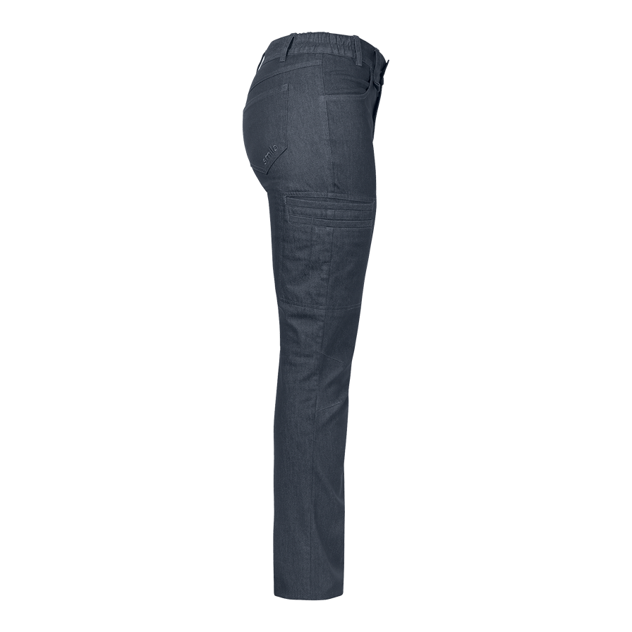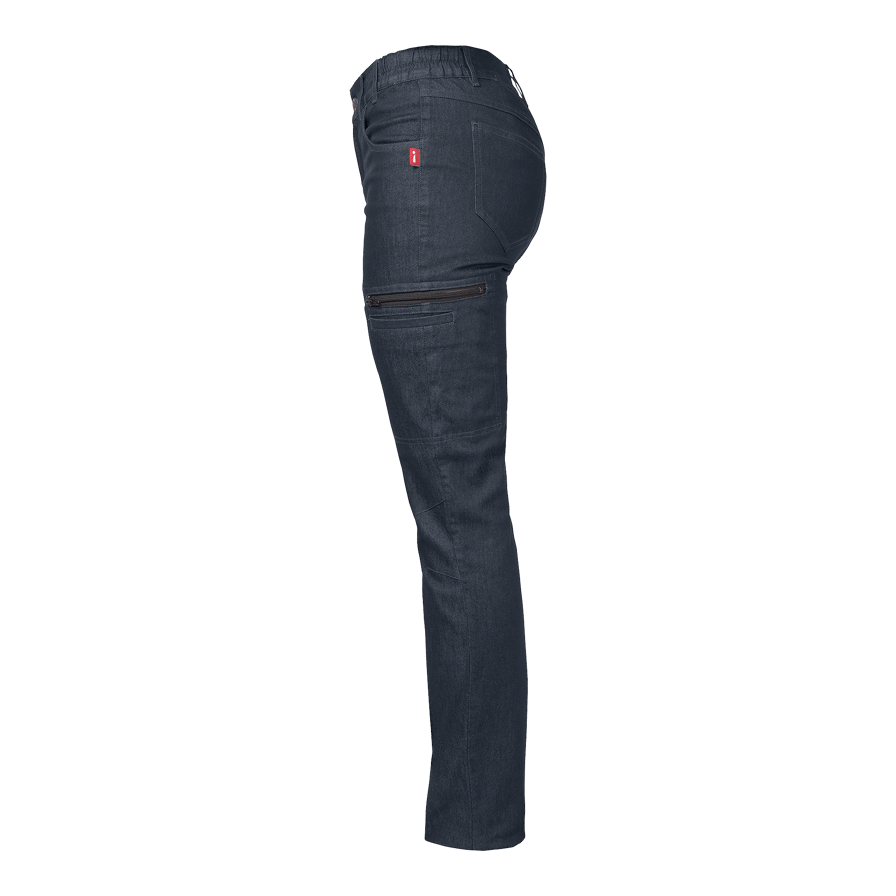 The Fia Trousers from South West are a sturdy and comfortable women's denim pant, designed for professionals who need durable workwear with a feminine touch. The pants have a stretch quality that provides optimal freedom of movement and a perfect fit, while the garment-washed finish provides a soft and comfortable feel. They are equipped with two front pockets, patch back pockets and a double zippered leg pocket and mobile phone pocket on the left leg, providing ample space for storing work tools and personal items. On the right leg there is a double passport pocket and a pen pocket for additional storage options. The fixed waistband with elasticated sides provides extra comfort, and the trousers also have belt loops and a key holder for secure storage. The fly has a zipper and button for a secure closure. Cut-outs at the knee provide increased mobility and comfort during long working days. Fia Trousers are available in several inch sizes and three different inseam lengths (30", 32", 34"), making it easy to find the perfect fit. South West's commitment to quality and durability makes these pants an excellent choice for women who demand both style and function in their workwear.