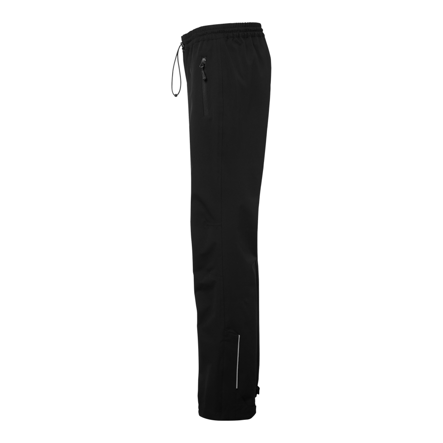 Wind- and water-repellent shell trousers in a vapor fit with taped seams and mechanical stretch. Adjustable elastic at the waist and zipper with reflective detail at the leg ends. Lined with polyester mesh at the top and smooth polyester at the legs. Two side pockets with zippers.