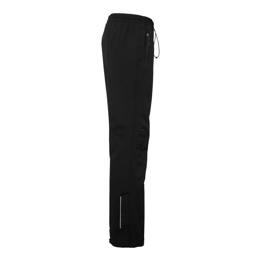 Wind- and water-repellent shell trousers in a vapor fit with taped seams and mechanical stretch. Adjustable elastic at the waist and zipper with reflective detail at the leg ends. Lined with polyester mesh at the top and smooth polyester at the legs. Two side pockets with zippers.