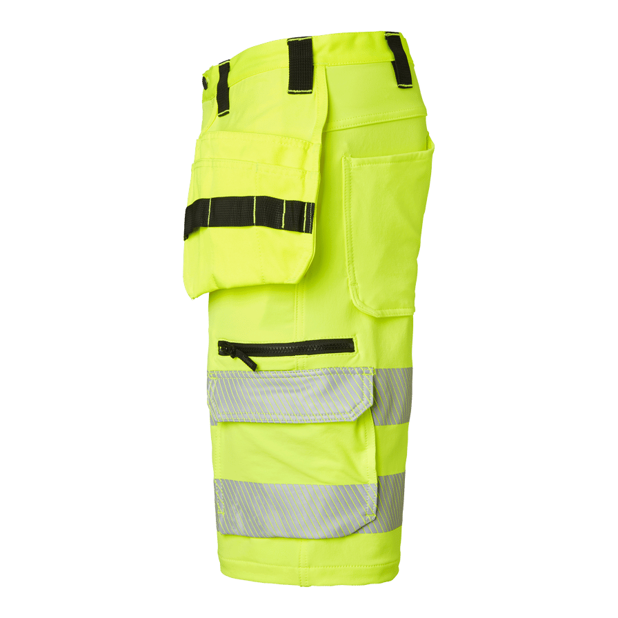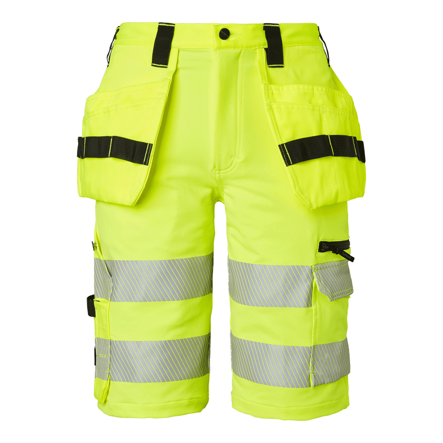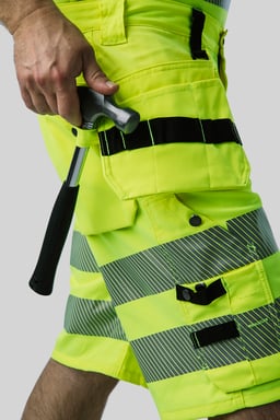 Discover the Top Swedes 315 Craftsmen Shorts, the perfect shorts for construction and industrial professionals who require maximum comfort and freedom of movement. These shorts are made entirely from 4-way stretch fabric, providing optimal freedom of movement and comfort throughout the working day. With a modern fit and loose-fitting nail pockets equipped with three extra compartments and tool loops, these shorts are designed to withstand tough working environments. They have two back pockets, an ID card pocket and an adjustable hammer handle for added practicality. The front ruler pocket, dropped at the bottom for better comfort, is equipped with two knife holders, a knife loop and a pen pocket. In addition, there is a zippered leg pocket and a lidded leg pocket and phone pocket, providing ample storage space for all your essential tools and accessories. Choose the 315 Craftsmen Shorts for a combination of durability, functionality and comfort that meets the highest standards in workwear, specially adapted for work in hot environments.