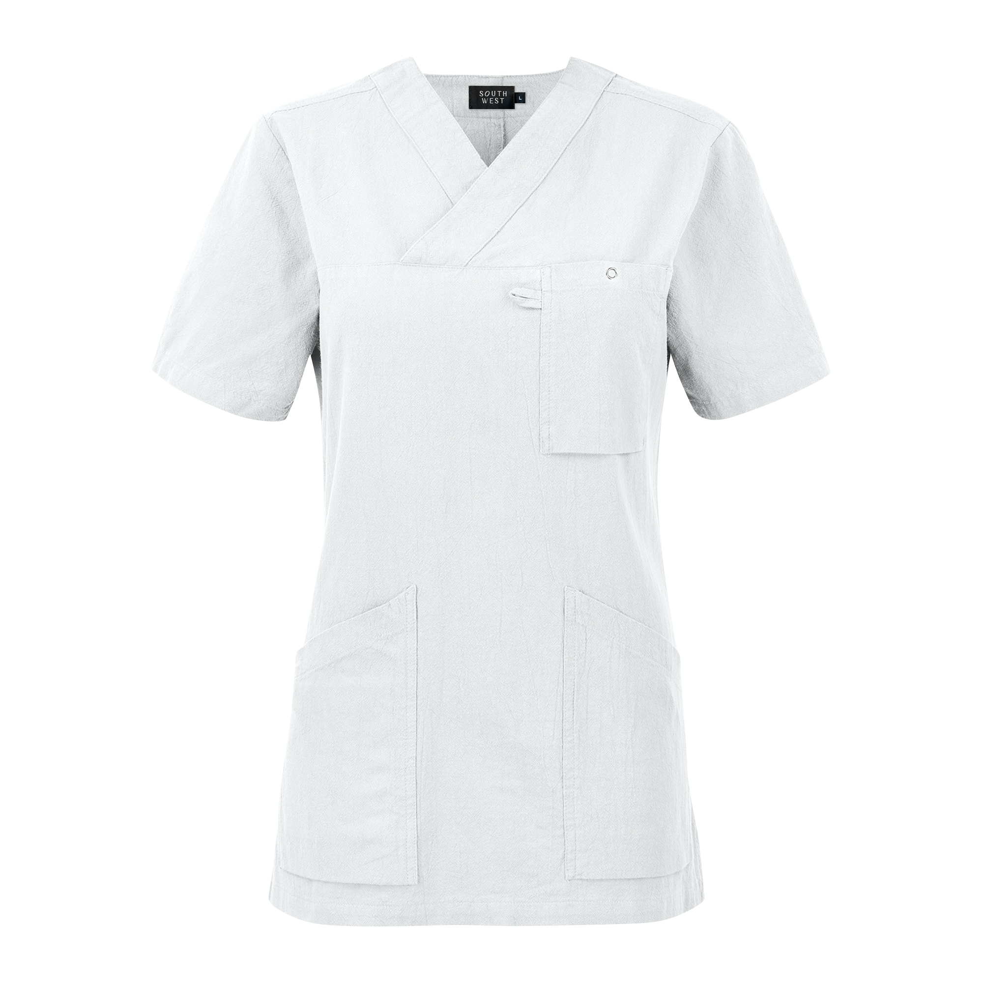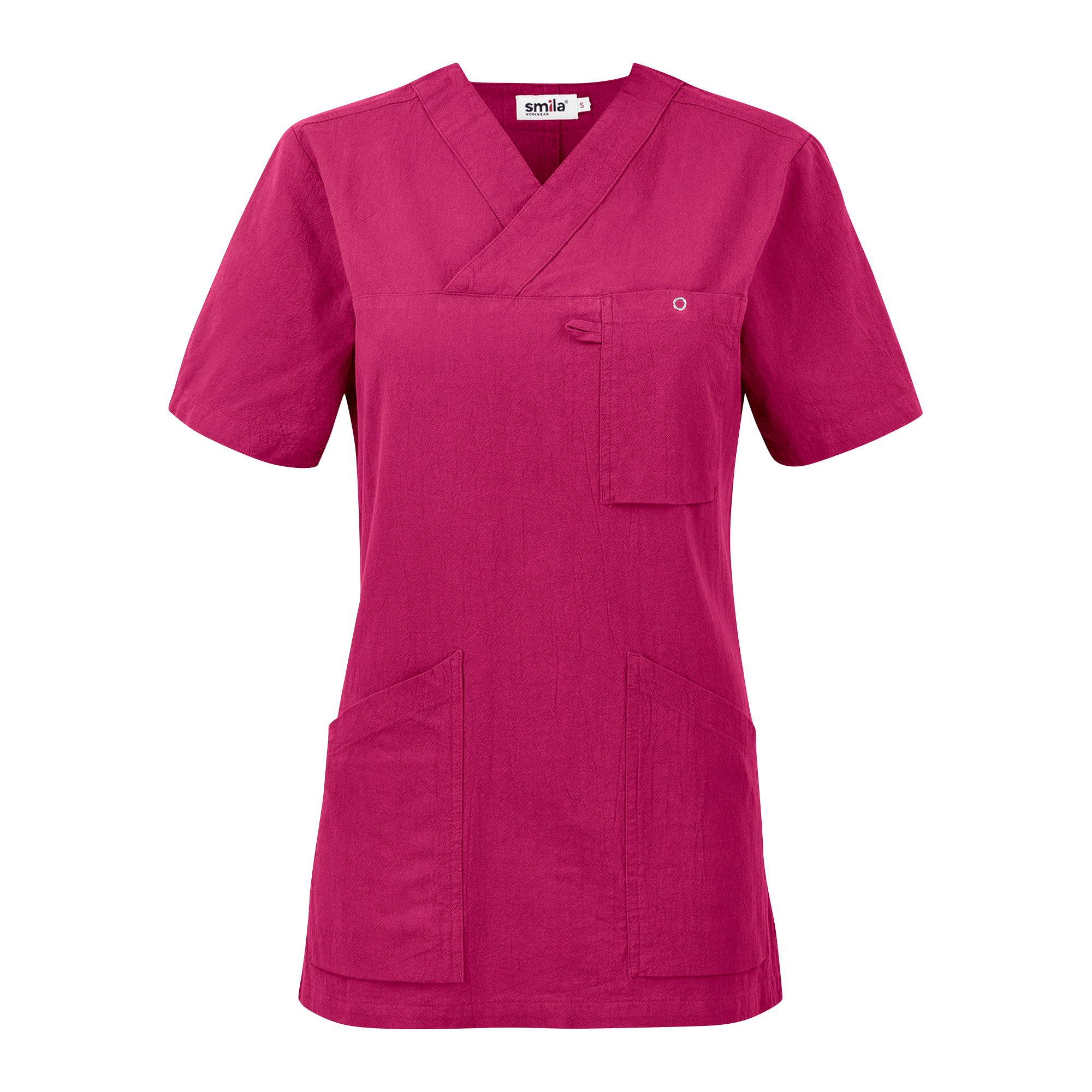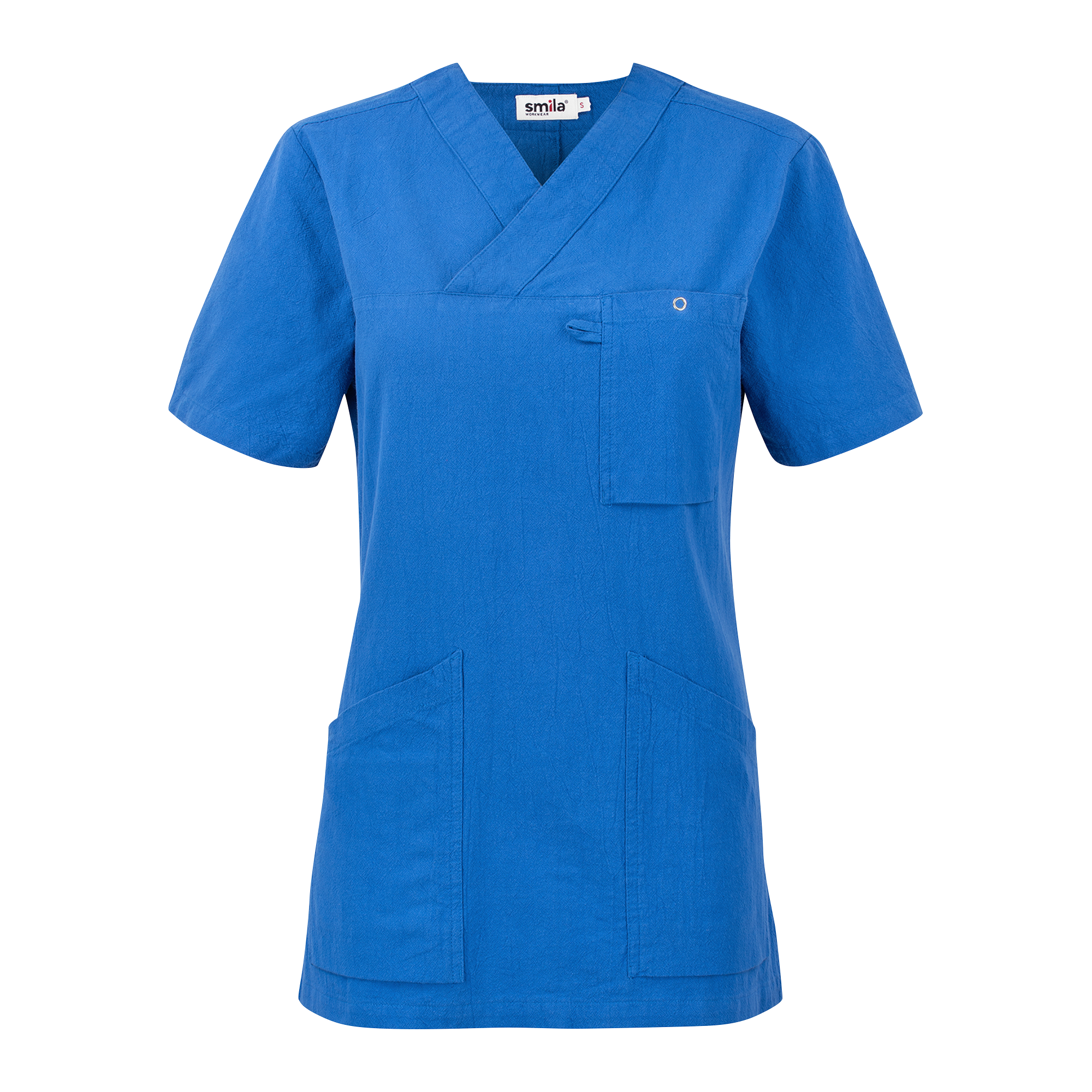 The Carin Blouse from Smila Workwear is a stylish and functional V-neck blouse designed specifically for women in healthcare professions. The figure-hugging fit with a slightly cinched waist accentuates a feminine silhouette without compromising on comfort and mobility. The spacious front patch pockets, including a pocket with key holder and mobile phone pocket, provide practical storage solutions for your most important work tools. The chest pocket is equipped with a ring button and card holder, making it easy to have quick access to ID cards and other necessities. With a back length of 72.5 cm in size M, the Carin Blouse offers both style and functionality, making it ideal for professionals who want to combine a professional appearance with practical details in their workwear. Smila Workwear's careful choice of materials and high standards ensure that this blouse will last for daily use in demanding work environments.