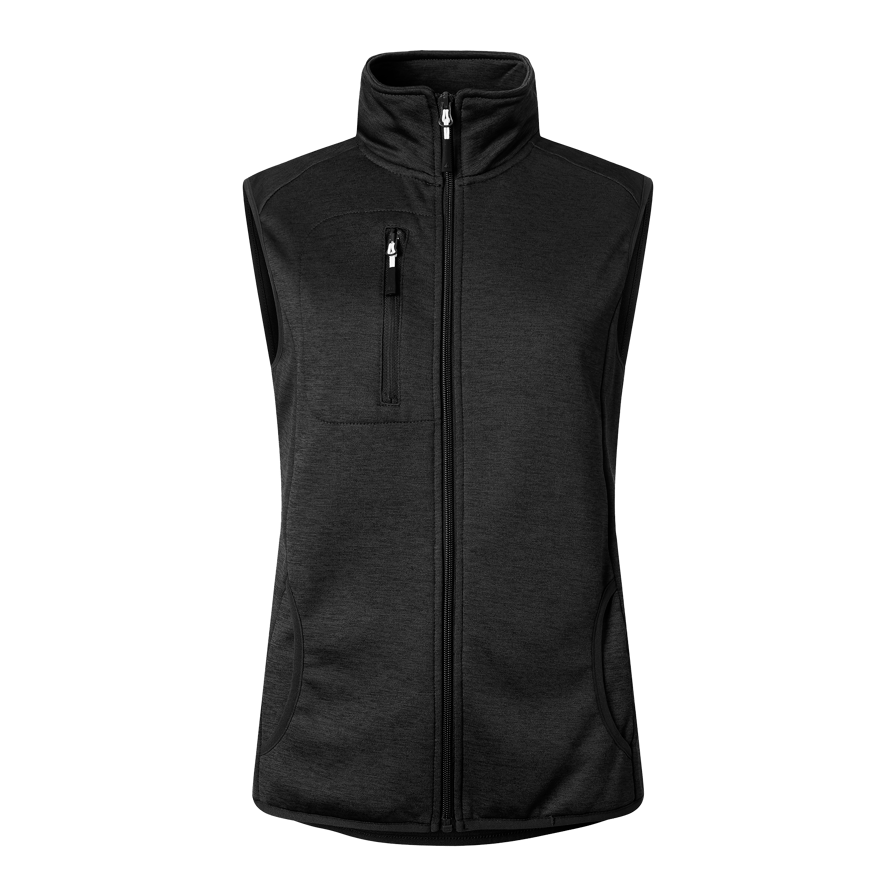 The Croz Vest w from Matterhorn is a women's fleece vest in mottled single jersey bonded with fleece. It has one chest pocket and two side pockets without zippers.