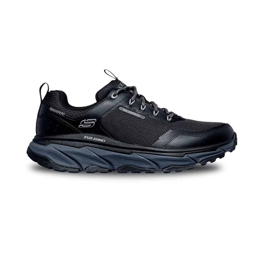 Adventure outdoors with comfort and style in Skechers Relaxed Fit®: D'Lux Journey.This sturdy vegan shoe features a spacious ripstop upper with heat-melt details, front lacing, a cushioned Air-Cooled Memory Foam® insole, and Skechers Breathe Easy Technology to keep your feet dry.