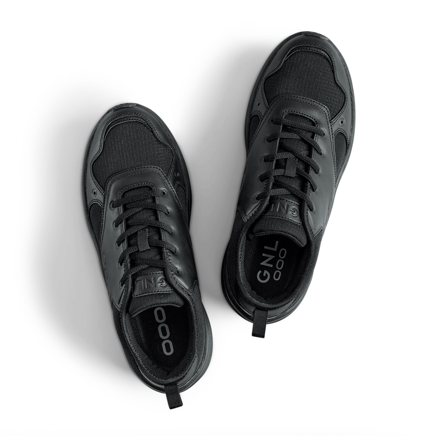 Discover the Office Walk from GNL, a versatile work and leisure shoe with advanced 360° Walk technology. The shoe has a leather and 3D mesh upper, designed for comfort, support and style. Equipped with a replaceable PU foam insole and recycled rubber outsole. Perfect for the office, business casual, and other leisure activities.