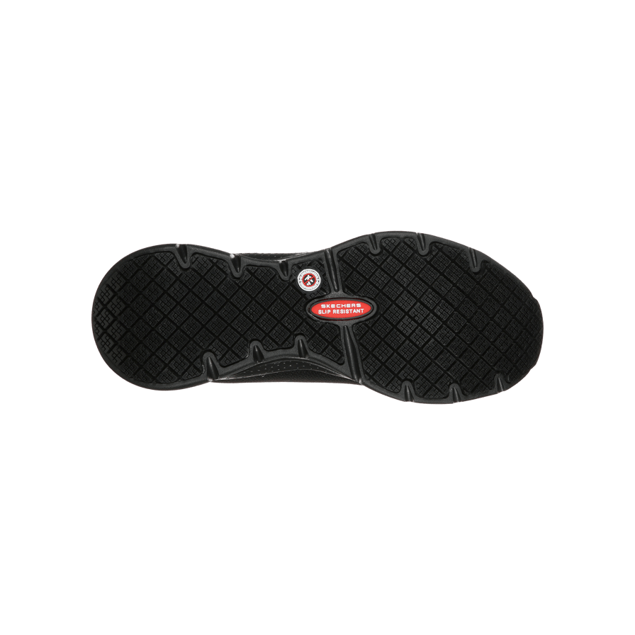 Well-liked Work model from Skechers with Arch fit insole, specially designed to provide the best arch support, which helps to distribute the weight of your body, provide cushioning and comfort. The shock-absorbing midsole gives additional comfort and the heel is shock absorbing. The mesh upper has details in TPU, both at the toe section and at the loops for increased durability. The shoe has a textile lining, padded heel and a non-slip outsole. ESD approved.