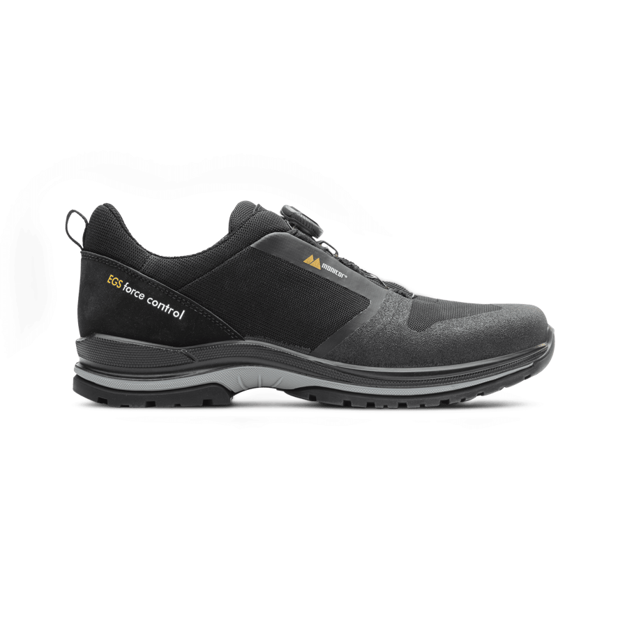 Monitor’s Sportwork collection has shoes for those who need proper and certified products but donot necessarily require toecaps or nail penetration protection. Monitor Master Boa is awell-ventilated pair of shoes with fabric upper and carbon reinforcement in the most vulnerableareas. The upper is also vegan-friendly, which means it contains no animal products whatsoever. Wehave equipped the back of the shoe with our EGR Force Control stabilisation system, which meansthe heelpiece is internally reinforced, helps to keep the heel in place, and strengthens lateralforces. Inside the shoe, Monitor’s Pro supportsole carefully supports the foot, absorbs moisture andensures the perfect microclimate.