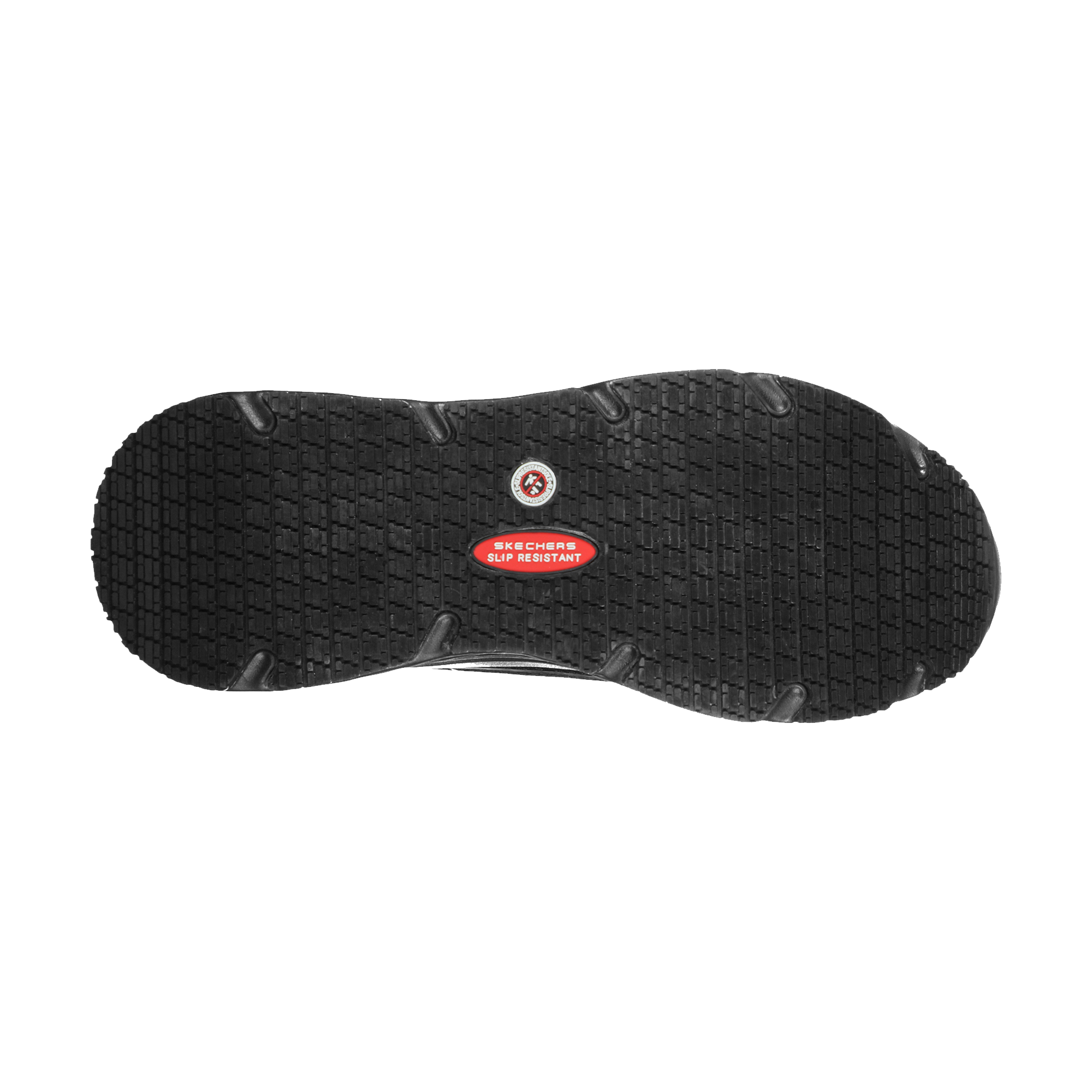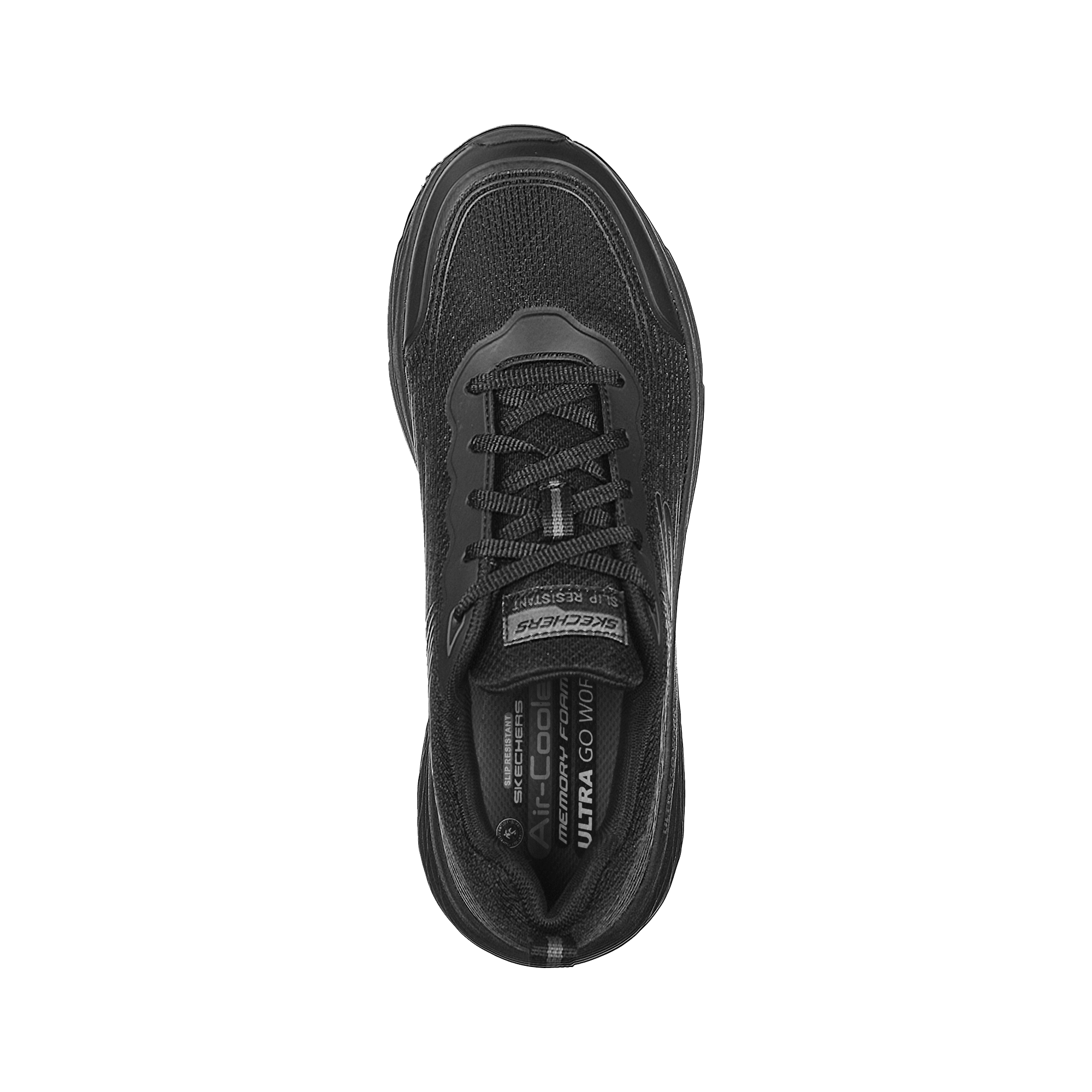 Popular model from Skechers with a mesh upper with tone in tone logo and details. Skechers Air cooled Memory Foam insole provides excellent cushioning. Max cushioning midsole is designed for the best comfort and a non-slip outsole makes this a good work shoe.