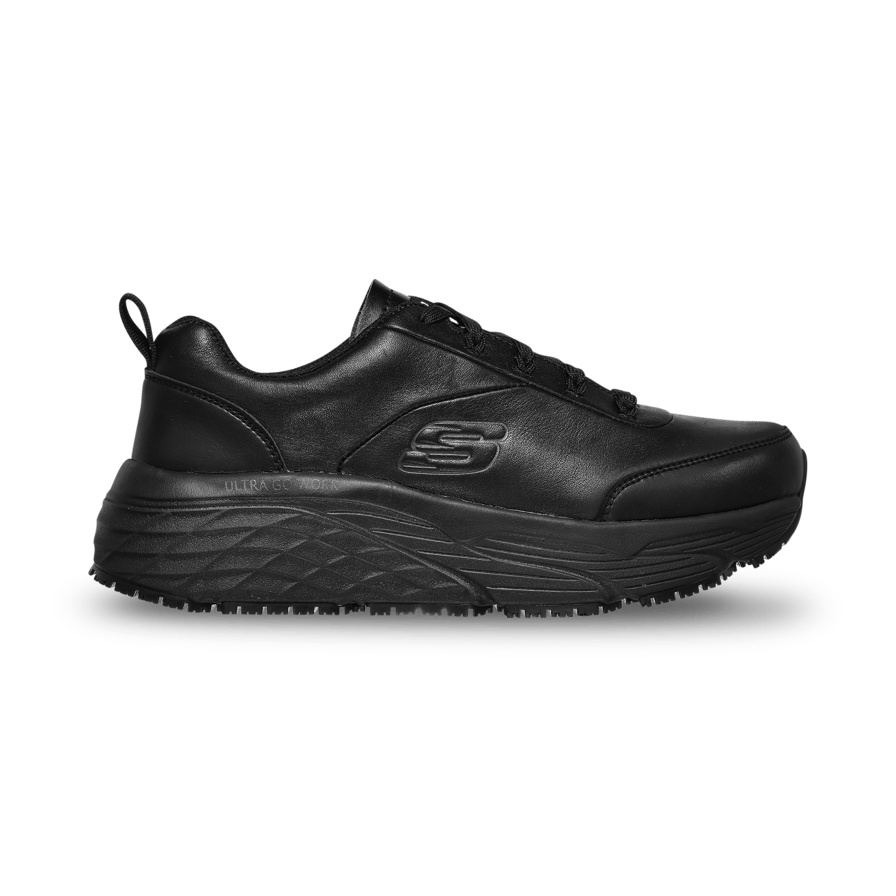 Well-liked Work model from Skechers with a removable Air Cooled Memory Foam insole which gives excellent cushioning. The Max cushioning Elite design provides excellent comfort. Extra reinforcement at the toe. The rubber sole is oil resistant and non-slip.