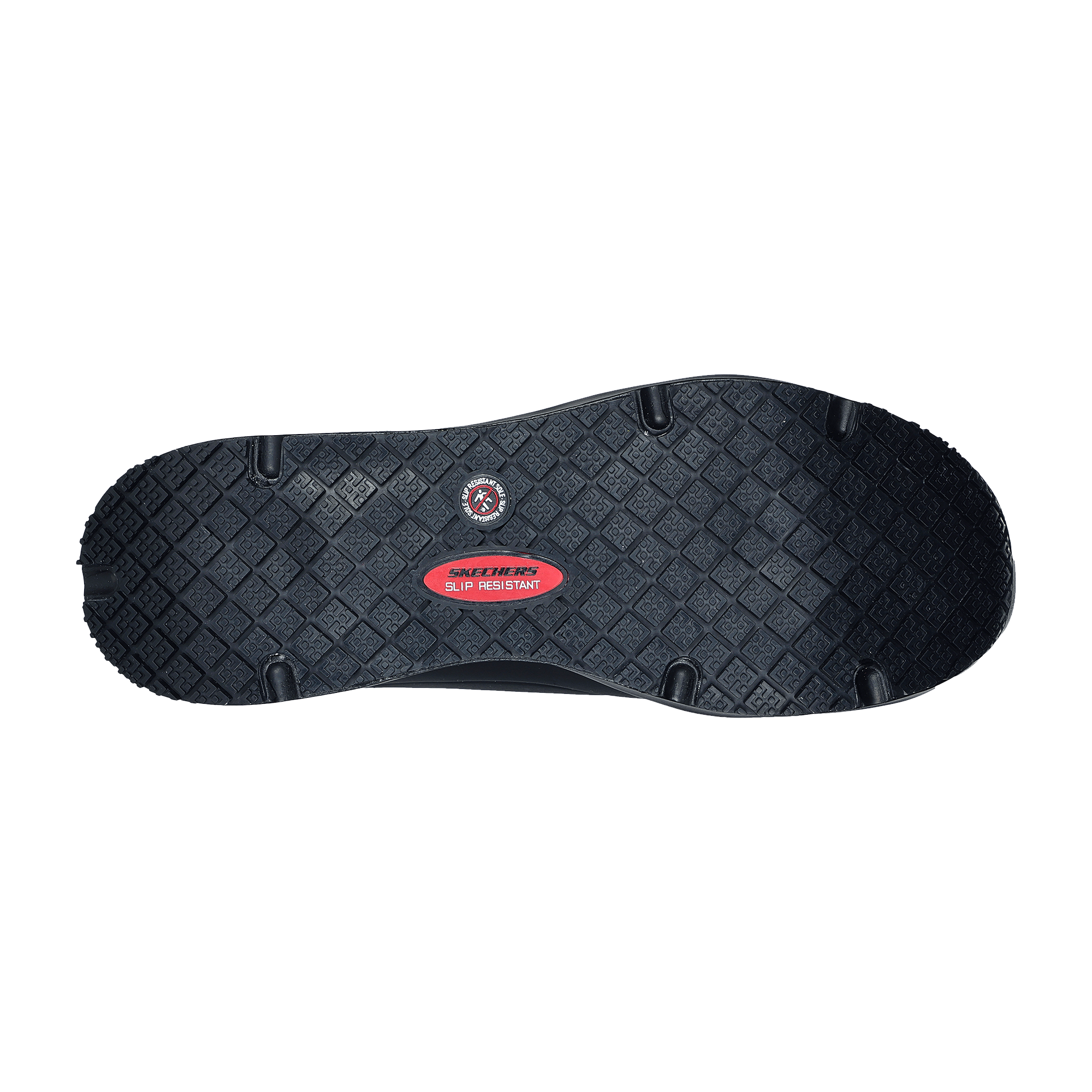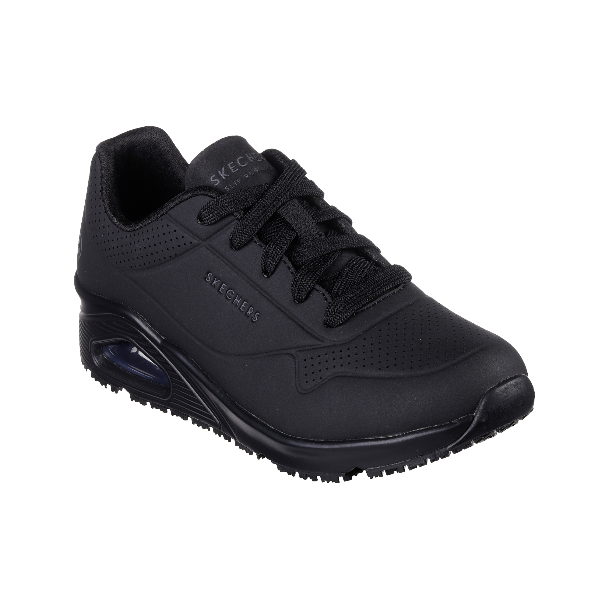 Non-slip model from Skechers with Skech-Air which is a visible air cushion. The synthetic upper has embossed details and a mesh lining that provides good comfort. Air Cooled Memory Foam insole. The shoe is ESD approved and the outsole is oil resistant and non-slip.