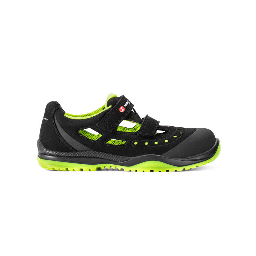 Discover the Meneito Safety Sandal S1P, a sporty and lightweight protective sandal from Sixton that combines innovative design with advanced technology to offer optimal safety and comfort in work environments. This sandal has an upper made of durable microfiber and suede, providing both durability and excellent breathability. The inside is lined with a breathable material that effectively wicks away moisture, keeping your feet dry and comfortable throughout the working day. The Meneito Safety Sandal S1P is equipped with an aluminum toe cap that protects against impacts and heavy objects, as well as a soft nail guard that prevents the penetration of sharp objects. The non-slip PU outsole provides excellent grip on a variety of surfaces, ensuring stability and safety in any work environment. In addition, the sandal is equipped with ESD protection to dissipate static electricity and protect sensitive electronic equipment. The Meneito Safety Sandal S1P is ideal for both men and women working in construction, industry and other sectors where safety and comfort are essential. Choose the Meneito Safety Sandal S1P to ensure optimal protection and comfort throughout your working day.