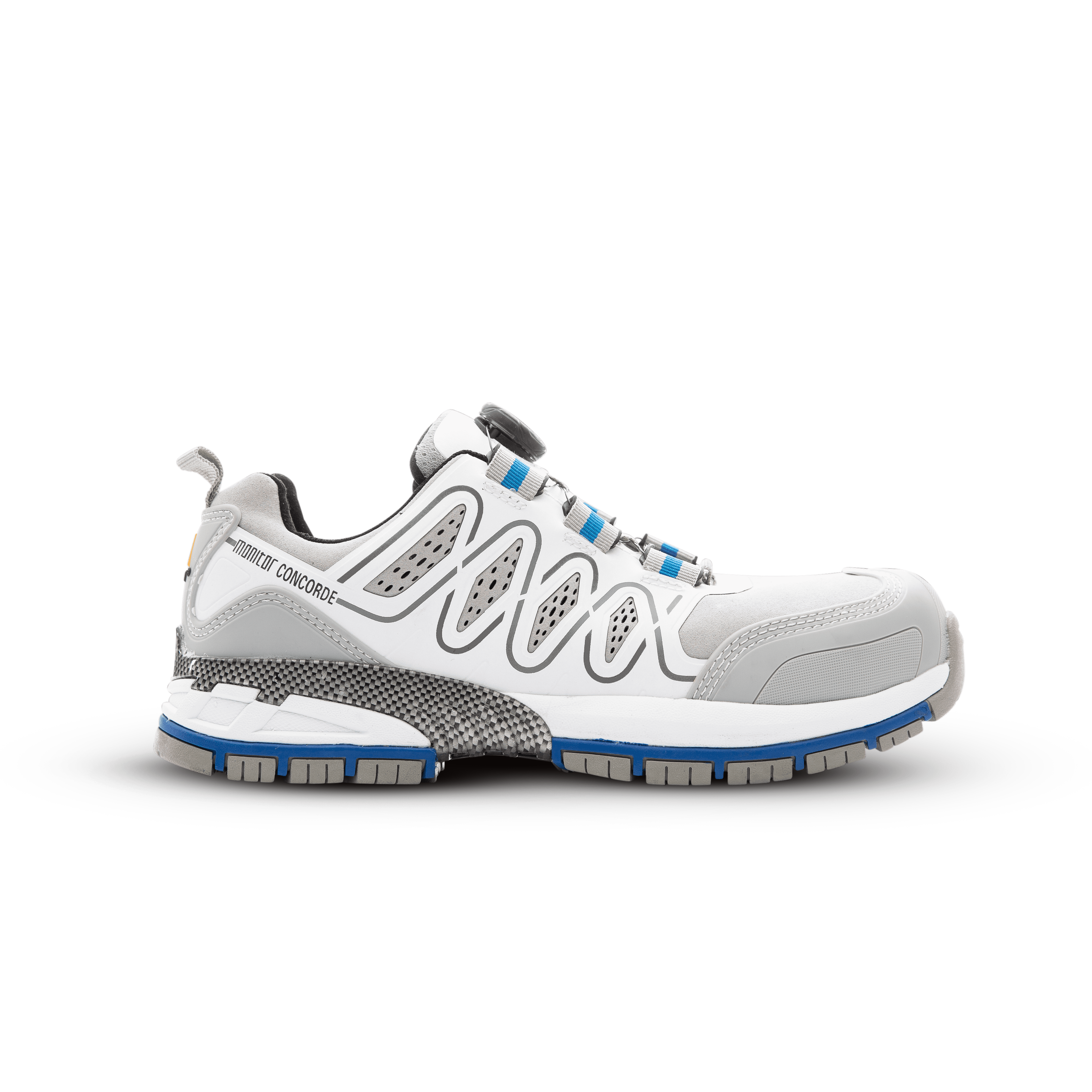 The Monitor Concorde Safety Shoe is a sporty safety shoe with a mesh and microfiber upper. The shoe has an aluminum toe cap, cushioning EVA midsole and a rubber outsole. Equipped with BOA® Fit System for easy lacing and optimal fit.