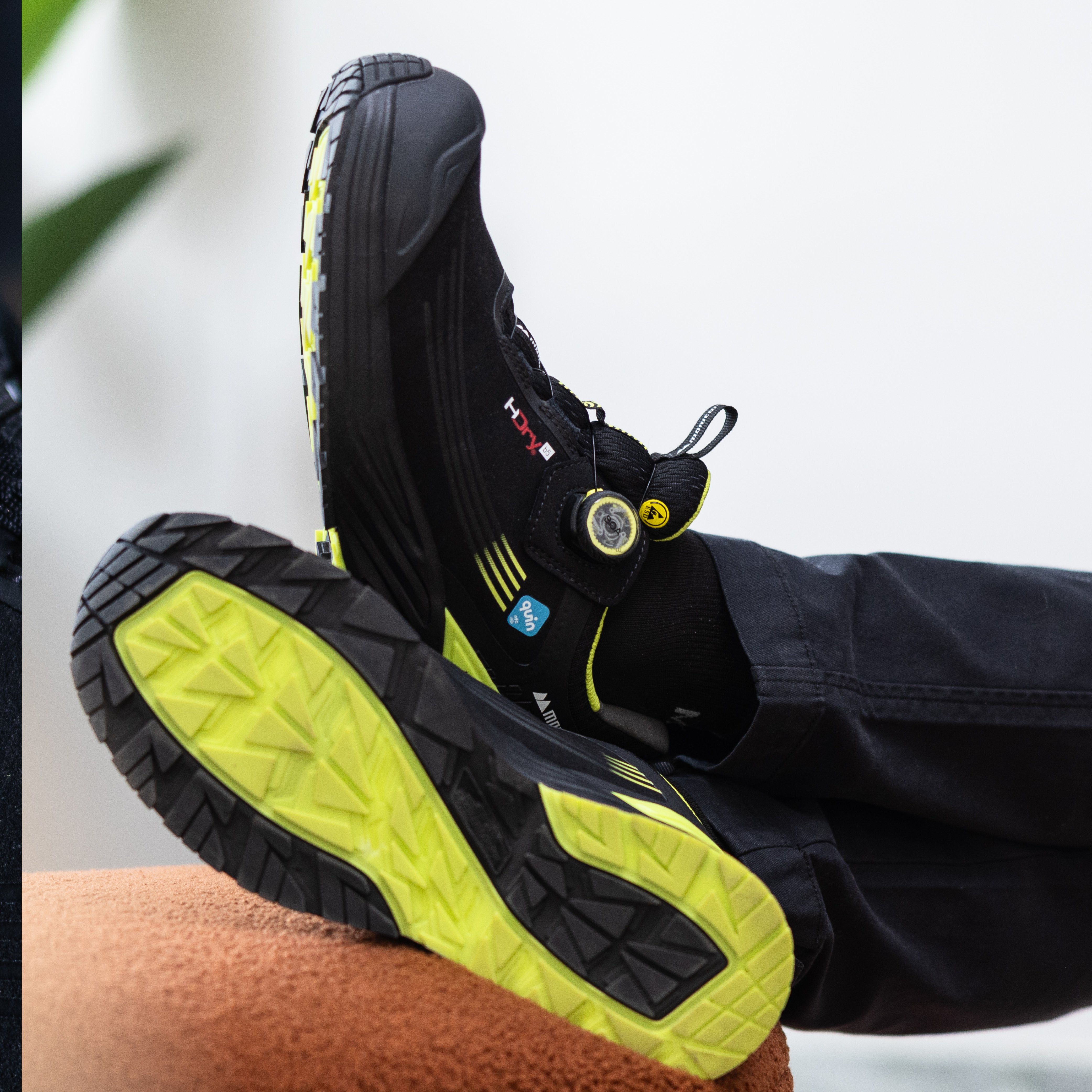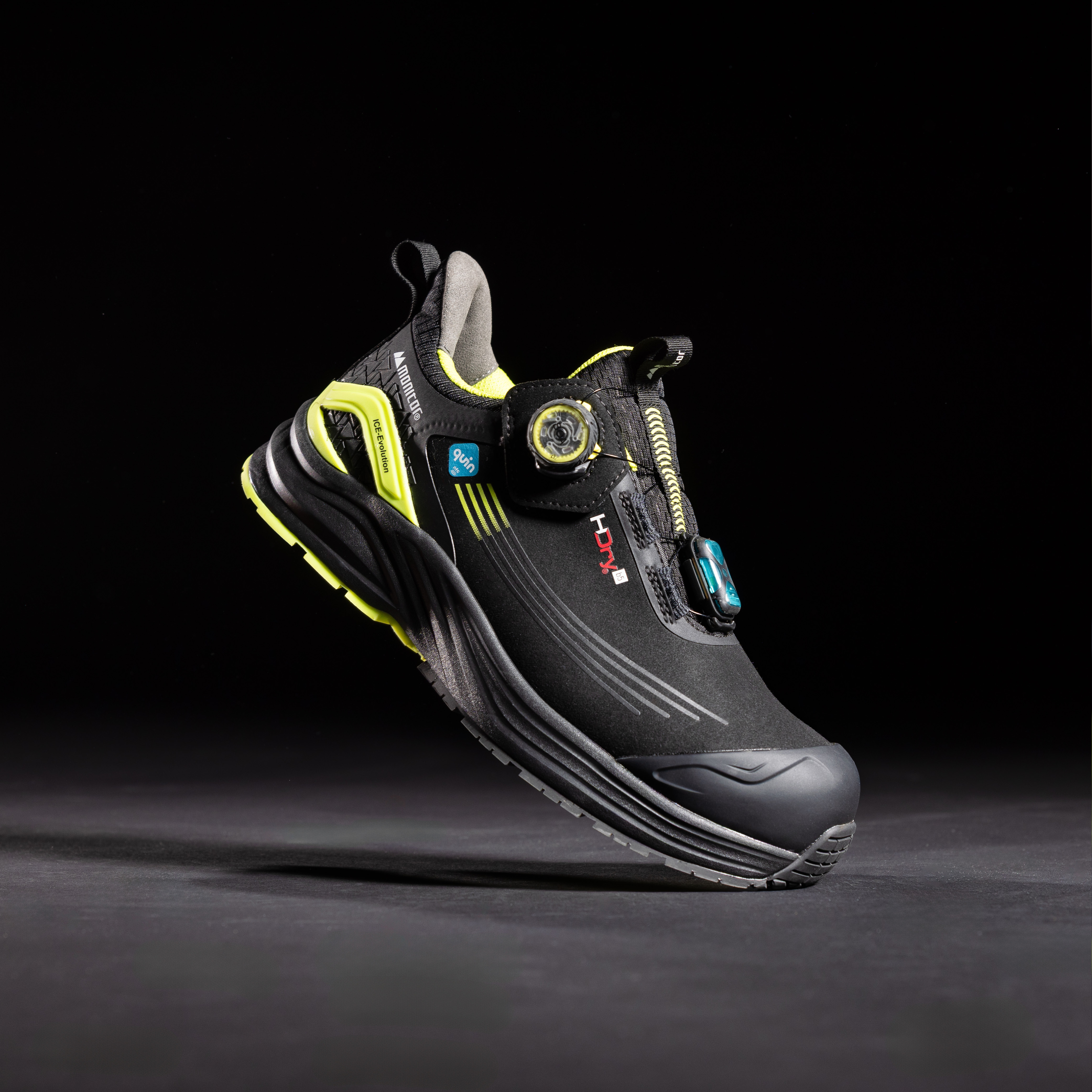 Experience the next generation of work footwear. ICE Evolution Flow from Monitor is the ultimate safety shoe, designed to offer maximum comfort and protection. The shoe features an NFC chip from Quin that can store essential information such as blood type and emergency contact details. The chip can be scanned with a mobile phone to access important information for emergency services or to contact family members in case of a workplace accident. The shoe incorporates a unique Monitor Return sole system, which includes a TPU stabiliser, an upgraded Recycle Plus 2.0 insole, a Super Critical Foam midsole for exceptional cushioning and energy return, an APT textile puncture-resistant plate, and a durable TPU outsole. Stay comfortable all day with a microfiber upper and Monitor's new Equip Fit design, with a flexible last that adapts to the MNTR1 toe cap to prevent chafing. The innovative BOA® Fit System Li2 allows you to adjust the fit quickly and precisely. ICE Evolution Flow is equipped with an HDry Bio membrane laminated to the upper, ensuring the shoe is fully waterproof.
