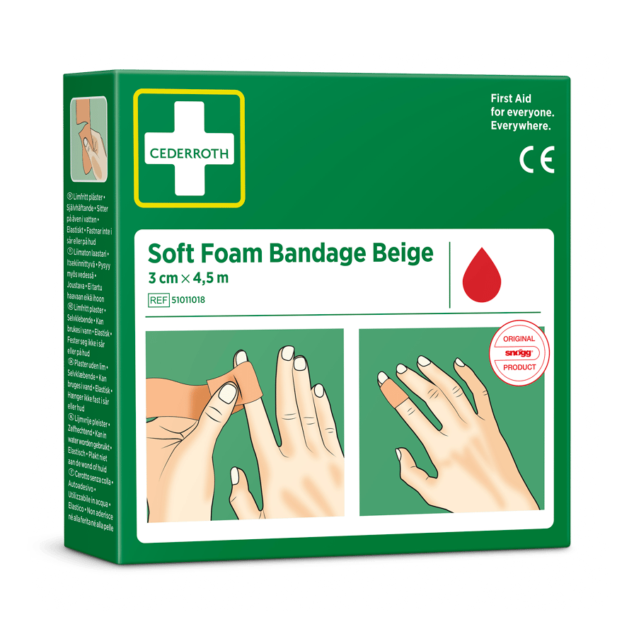 Cederroth Soft Foam laastari beige 3 cm x 4,5 m sormille tai varpaille toimii laastarina ja sidoksena. Sopii pieniin haavoihin kuumuudesta, kylmyydestä, kosteudesta tai kuivuudesta riippumatta ja pysyy paikallaan vedessä. Ei tartu ihoon tai hiuksiin. Lateksiton. Sopii automaattiin REF 510004108.