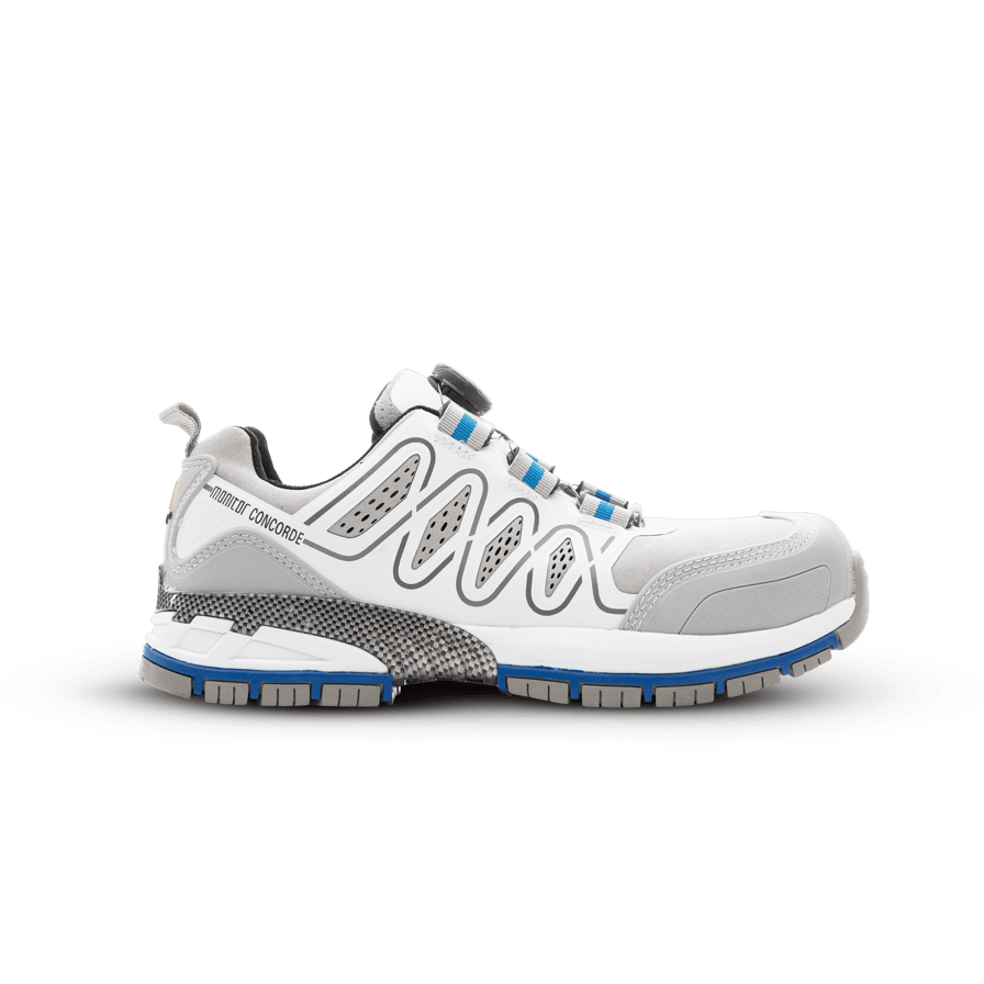 Monitor Concorde Safety Shoe -turvakenkä on urheilullinen kenkä, jossa on verkko- ja mikrokuitupäällinen. Kengässä on alumiininen turvakärki, pehmustava EVA-välipohja ja kuminen ulkopohja. Varustettu BOA® Fit System -järjestelmällä, joka mahdollistaa helpon kiristyksen ja optimaalisen istuvuuden.