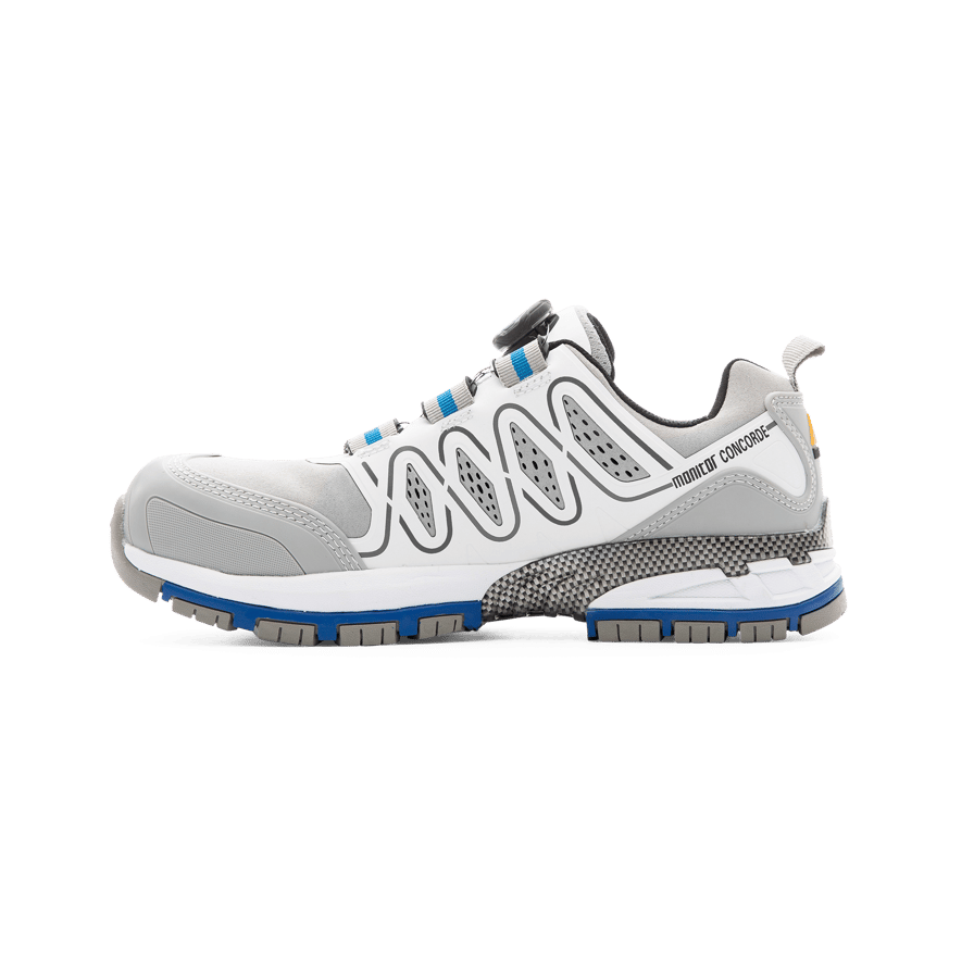 Monitor Concorde Safety Shoe -turvakenkä on urheilullinen kenkä, jossa on verkko- ja mikrokuitupäällinen. Kengässä on alumiininen turvakärki, pehmustava EVA-välipohja ja kuminen ulkopohja. Varustettu BOA® Fit System -järjestelmällä, joka mahdollistaa helpon kiristyksen ja optimaalisen istuvuuden.