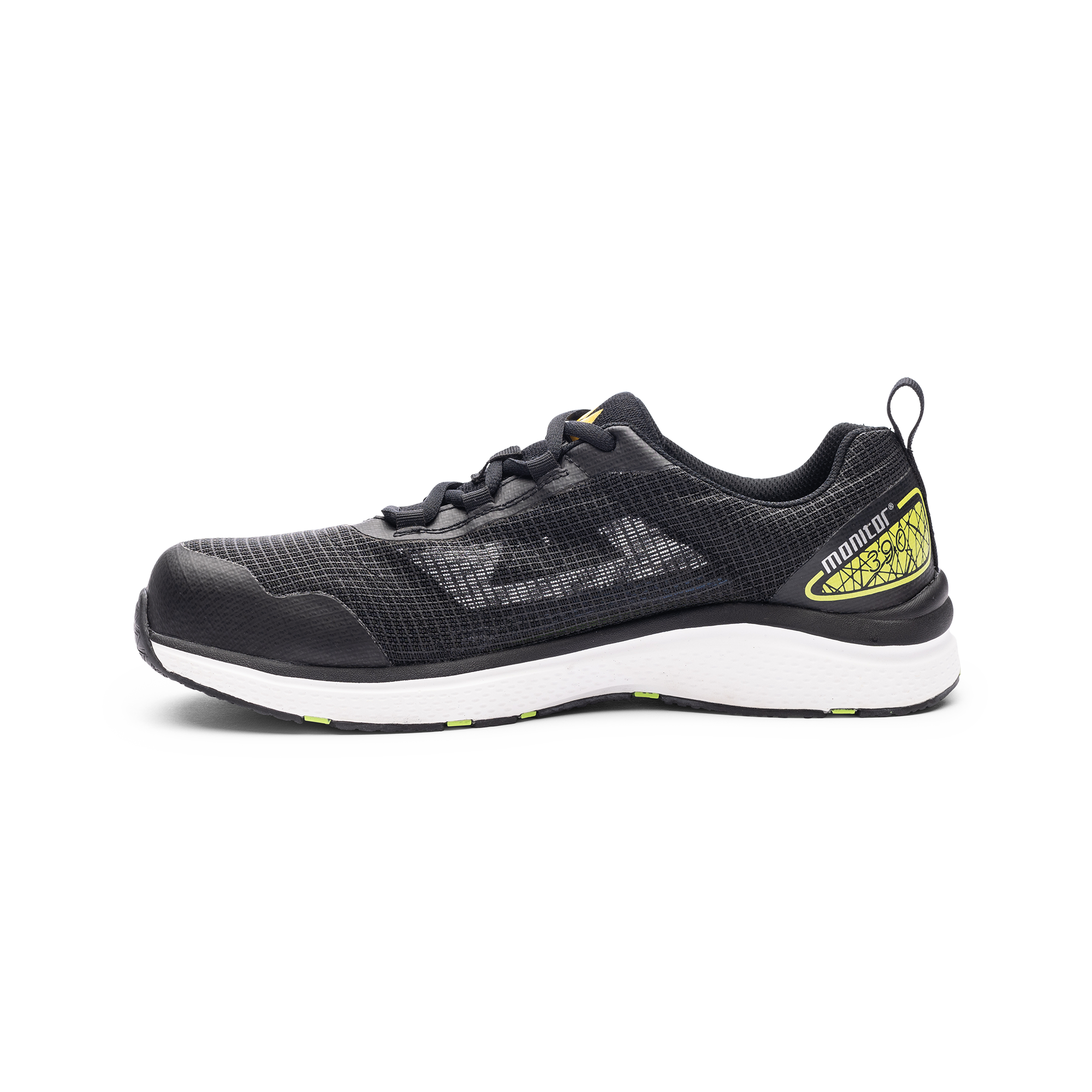 Monitor Three 100 Ninety Safety Shoe on kevyt turvakenkä, jossa on Hypertex-päällinen, alumiininen turvakärki ja Pantzar-naulaanastumissuoja. Kengässä on EVA-välipohja, nitriilikuminen ulkopohja ja kierrätetty PU-pohjallinen.