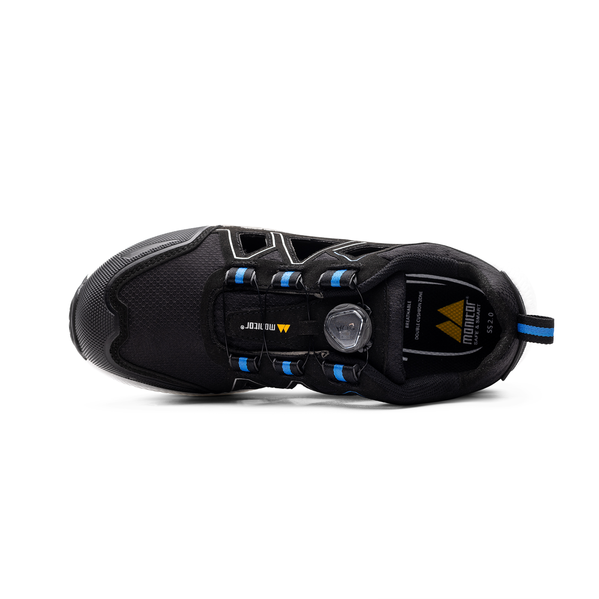 Monitor Paradox R Safety Sandal -turvasandaali on kevyt ja ilmava vaihtoehto, jossa on tekstiilipäällinen ja runsaasti avoimia alueita. Sandaalissa on alumiininen turvakärki, Pantzar APT -naulaanastumissuoja sekä ulkopohja, joka koostuu liukumatonta nitriilikumia ja paisutettua termoplastista polyuretaania. Kengässä on BOA® Fit System -järjestelmä, joka mahdollistaa mukautuvan istuvuuden.