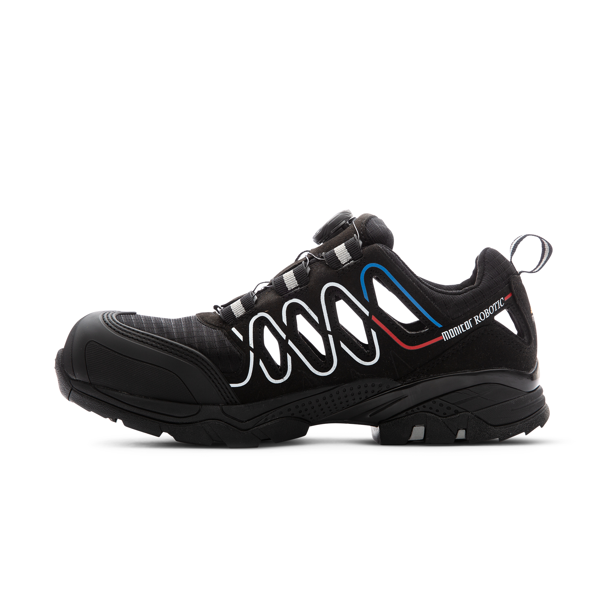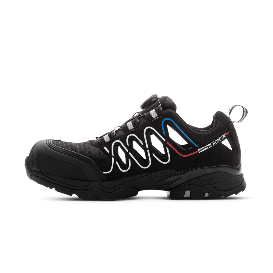 Monitor Robotic Safety Sandal -turvasandaali on työsandaali, jossa on verkko- ja mikrokuituinen päällinen. Sandaalissa on alumiininen turvakärki, pehmeä EVA-välipohja ja kuminen ulkopohja. Varustettu BOA® Fit System -järjestelmällä nopeaa ja helppoa kiristystä varten.