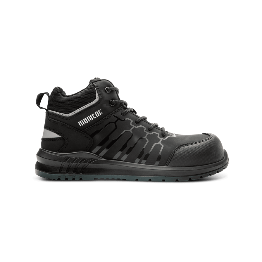 Monitor Hybrid -turvajalkine kuuluu Monitorin uuteen Dynamic-mallistoon, yhdistäen urheilullisen muotoilun, korkean turvallisuuden sekä mukavuuden rakennus- ja teollisuusammattilaisille. Tämä turvajalkine on suunniteltu maksimaalista suojaa ja mukavuutta varten koko työpäivän ajan. Päällinen on valmistettu kestävästä nahasta, ja kosteutta imevä tekstiilivuori pitää jalat kuivina ja mukavina. Ulkopohja on valmistettu kaksikerroksisesta polyuretaanista, jossa välipohjan pehmeys on 50 Shore A. Takaa erinomaisen pehmustuksen ja mukavuuden yhdessä Monitorin SS 2.0 -pohjallisen kanssa. Kengässä on komposiittikärkisuoja ja pehmeä APT-naulaanastumissuoja suojaten iskuilta ja lävistyksiltä joustavuudesta tinkimättä. Monitor Hybrid -turvakengässä on perinteinen nauhoitus ja lenkki takana varmistaen parhaan istuvuuden. Tämä saapas sopii sekä miehille että naisille, jotka etsivät luotettavaa ja mukavaa turvajalkinetta urheilullisella muotoilulla ja kilpailukykyiseen hintaan. Monitor Hybrid -turvakenkä yhdistää korkean turvallisuuden, erinomaisen mukavuuden ja kestävyyden koko työpäivän ajaksi.