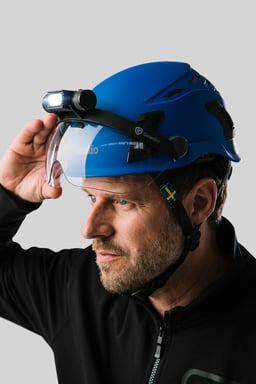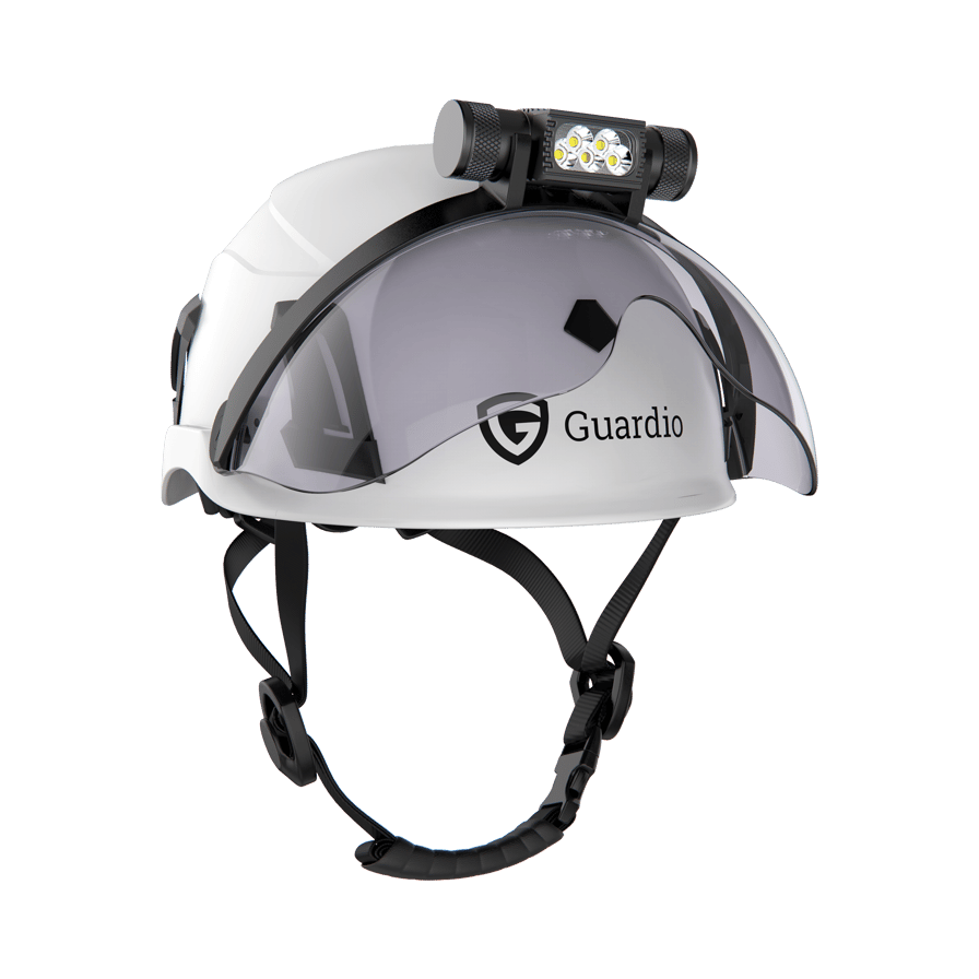 Guardio VisorFlex -otsalamppu, jossa on viisi valotilaa. Kevyt rakenne, säädettävissä kypärävisiirin kanssa, pitkä kantama. Akun kesto riittää pitkiin työvuoroihin.