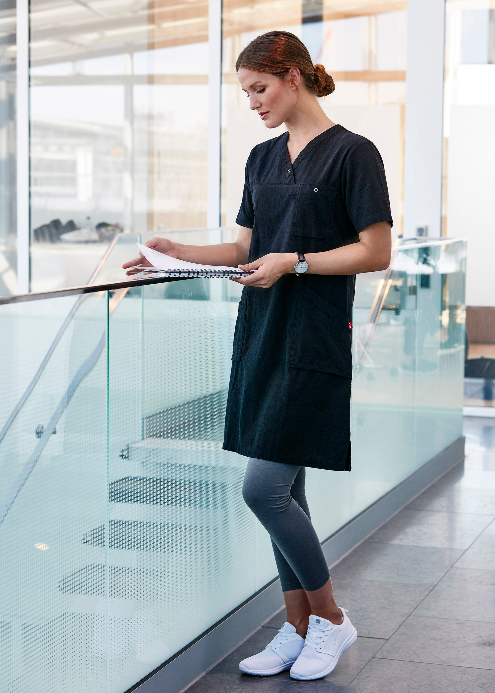 Keneltäkään ei jää huomaamatta, että työ hoito- ja hoiva-alalla on vaativaa ja alaan kohdistuu korkeita vaatimuksia. Hygieniasta tulee huolehtia, liikkumisen tulee olla helppoa ja hoidettavien on pystyttävä tunnistamaan työtekijät. Siksi valitsemme materiaalit ja värit huolella ja pohdimme tarkkaan yksityiskohtia ja saumoja. Smilalle hyvä istuvuus ei tarkoita ainoastaan sitä, että vaatteet istuvat hyvin. Vaatteet tuntuvat lisäksi mukavilta päällä ja myötäilevät vartalosi jokaista liikettä, jokaisen työtunnin aikana. Samalla tavalla kuin työssäsi vaaditaan hellyyttä, voimaa ja osaamista, myös vaatteemme ovat miellyttäviä, vahvoja ja fiksuja.