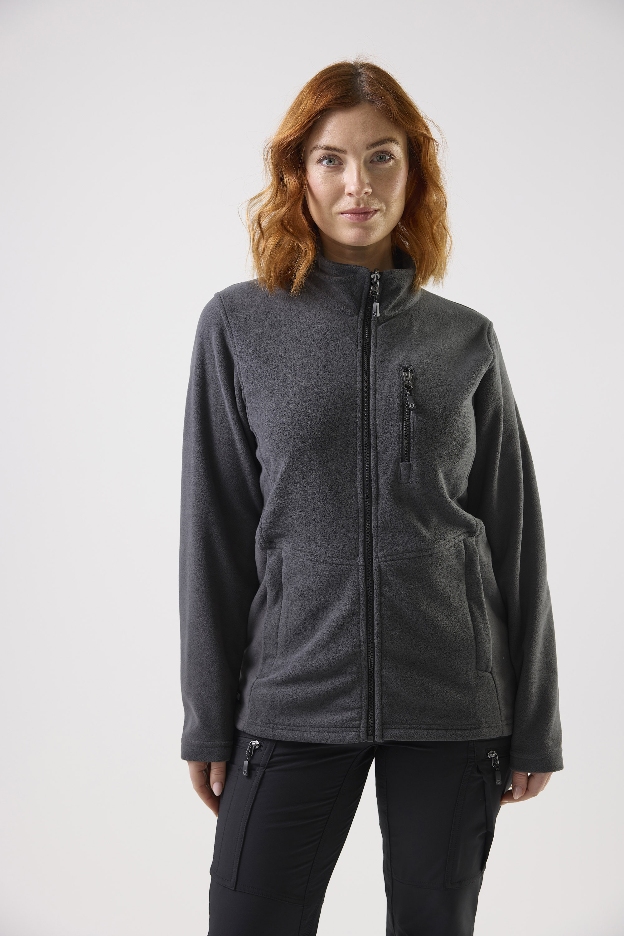Fleecetakki, jossa on vartalonmyötäinen istuvuus ja jota voi käyttää yksin tai Alma-kuoritakkiin liitettynä. Varustettu kahdella sivutaskulla ja yhdellä rintataskulla, joissa on kontrastiväriset vetoketjut. Mukana vaihdettavat mustat vetoketjunvetimet.