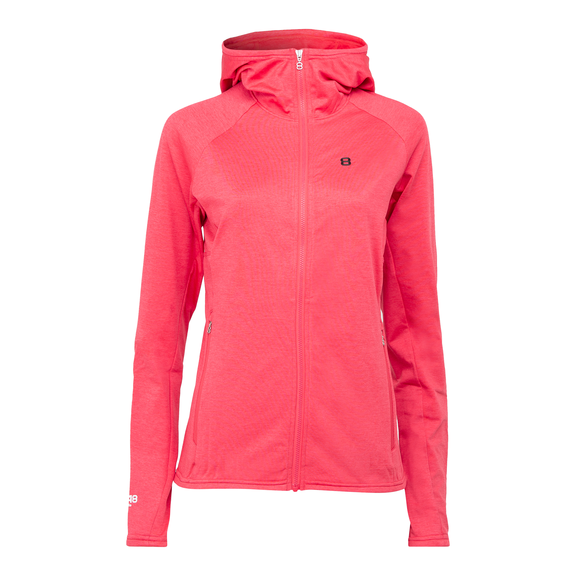Tekninen naisten huppari kevyttä ja erittäin myötäilevää, 4-suuntaan joustavaa materiaalia, jollaon kosteutta siirtäviä ominaisuuksia. Täydellinen vaellukseen, reippaille kävelyretkille tailämmittäväksi kerrokseksi takin alle. Materiaalissa on tyylikäs meleerattu tehoste,joka luo ainutlaatuisen ilmeen. Pehmeä harjattu sisäpuoli. Vyötäröllä kaksi vetoketjutaskua.Kiinteä huppu.
