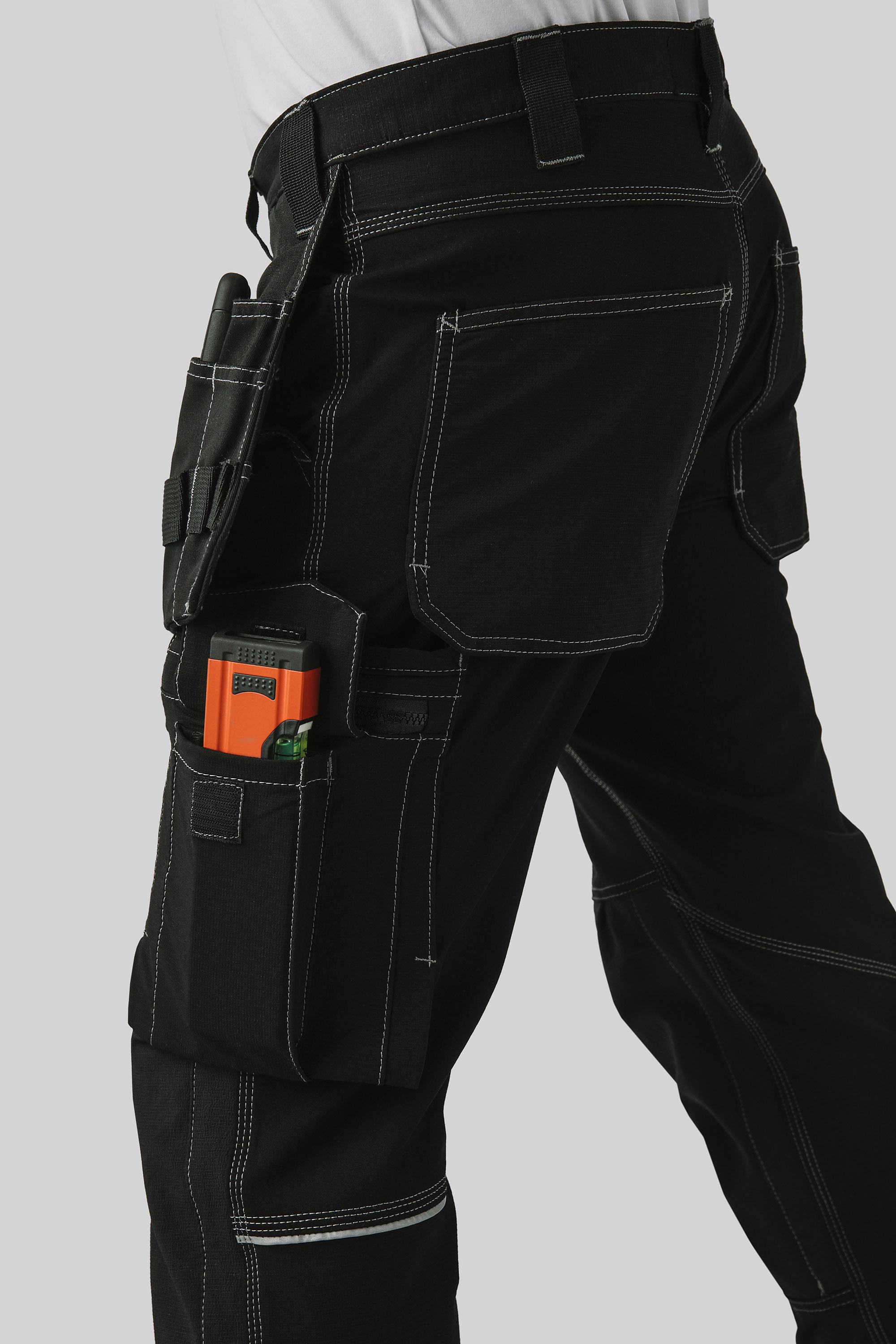 Craft-housut on valmistettu 4-suuntaisesta stretch-materiaalista joissa on esitaivutetut lahkeet sekä Cordura®-vahvistetut polvitaskut. Housuissa on kaksi etutaskua, vahvistetut takataskut, löysästi roikkuvat naulataskut lisälokeroilla, vetoketjullinen reisitasku ja heijastimet takana. Täydelliset vaativiin työympäristöihin.