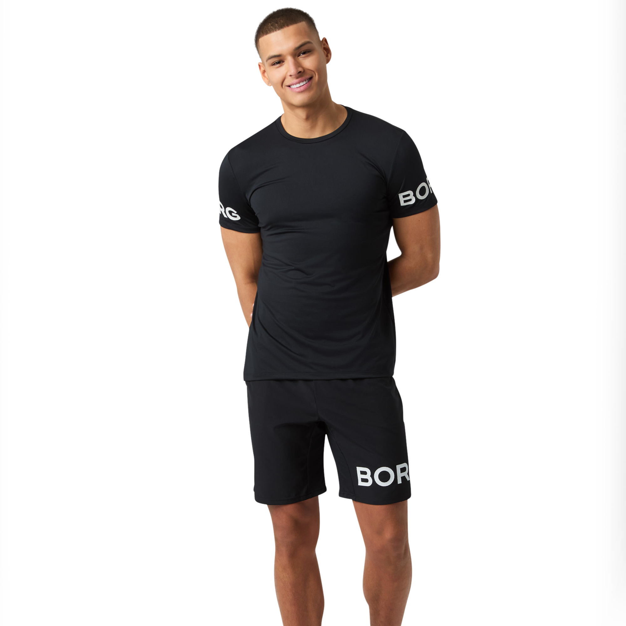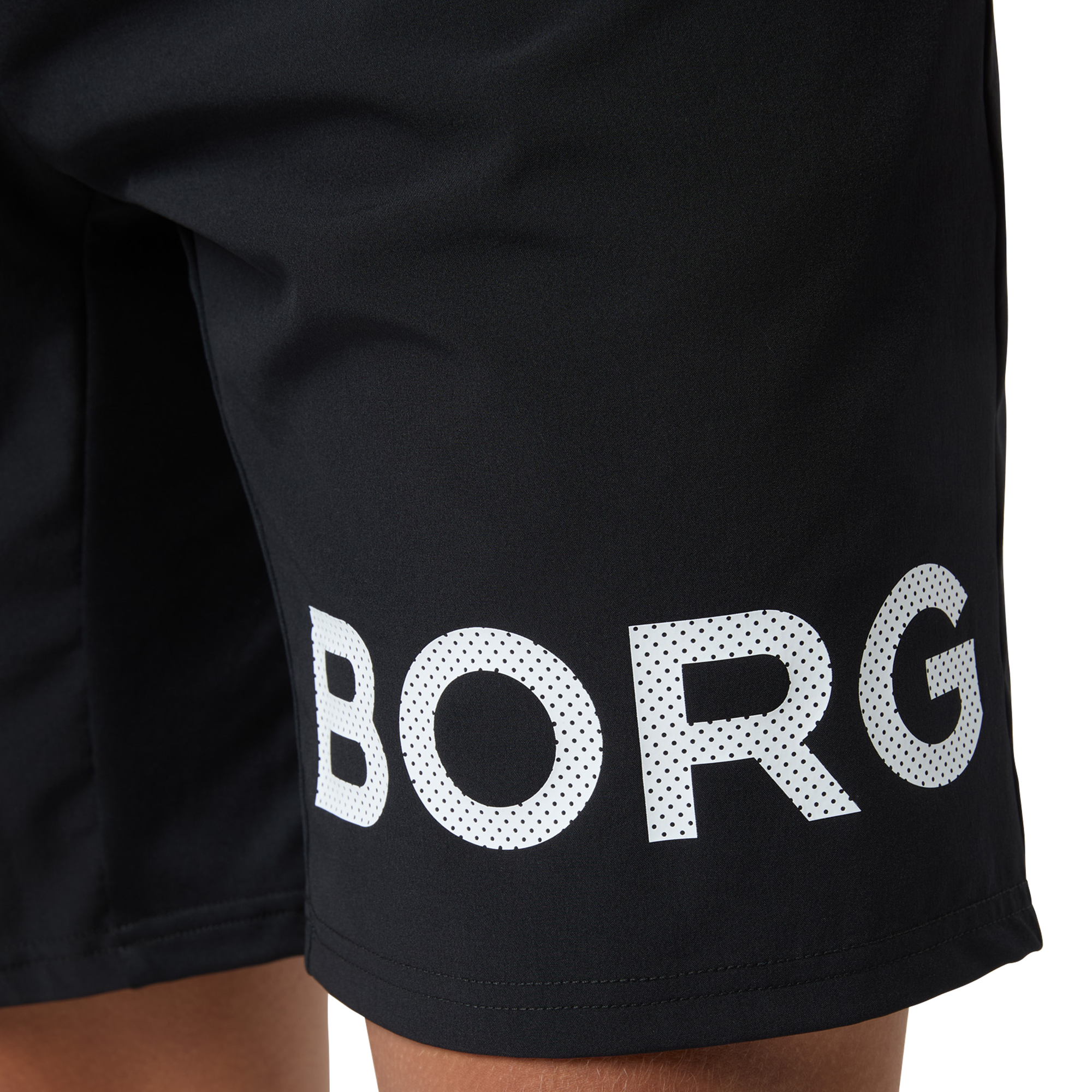 Shorts BB Logo Björn Borgilta ovat mukavat treenishortsit erilaisiin liikuntatyyppeihin. Materiaali on kierrätettyä polyesteriä ja elastaania, ja lahkeiden sisäpuolella on joustava trikoo. Ne on valmistettu nopeasti kuivuvasta Hydro Pro -materiaalista, joka siirtää kosteutta pois. Yläosassa on joustava kuminauha Borg-painatuksella, ja istuvuus on normaali. Vyötäröä voi säätää kiristysnauhalla, ja sivutaskut sekä avaintasku vyötärön sisäpuolella ovat fiksuja yksityiskohtia.