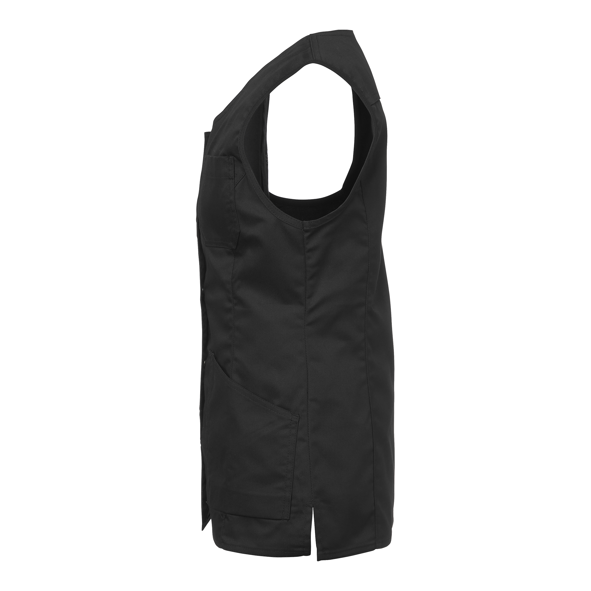 Naisten liivi, jossa on istuva vyötärö, halkiot alareunassa ja nepparit edessä. Varustettu rintataskulla ja kahdella viistolla etutaskulla.