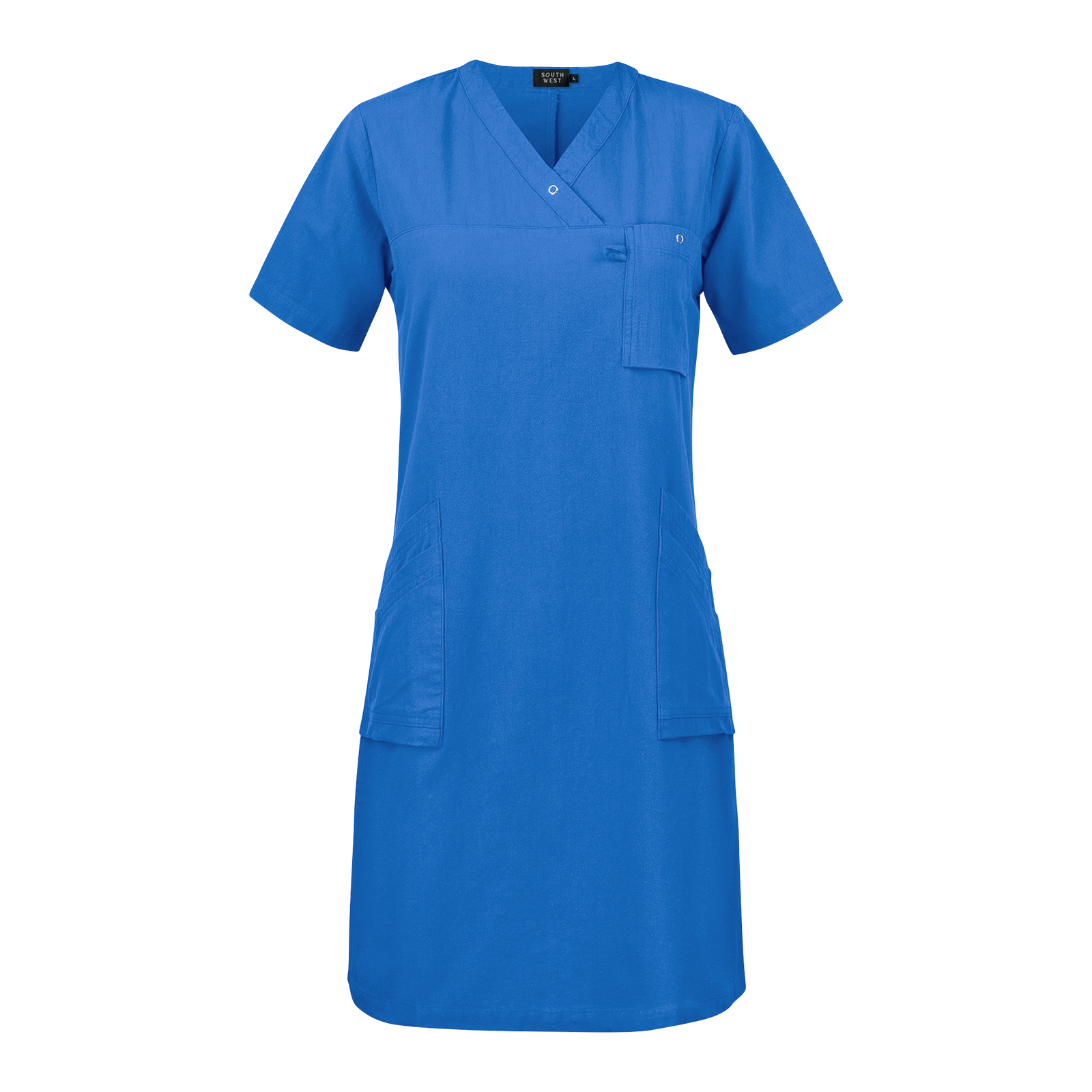 Smila Workwearin Cajsa-mekko on tyylikäs ja toimiva mekko, joka on suunniteltu terveydenhuoltoalalla työskenteleville naisille. Siinä on imarteleva V-aukko ja hieman kapeneva leikkaus, joka korostaa vartaloa antaen samalla maksimaalisen mukavuuden pitkien työpäivien aikana. Tilavat ulkoiset etutaskut ovat käytännölliset, ja niissä on lisätasku, jossa on avaimenpidike ja matkapuhelintasku. Rintatasku, jossa on rengasneppari ja korttipidike antaa helpon pääsyn henkilökortteihin ja muihin tärkeisiin tavaroihin. Cajsa-mekon selkäpituus on 100 cm koossa M, ja se yhdistää toiminnallisuuden ja tyylin, joten se on ihanteellinen valinta työssäkäyville naisille, jotka haluavat säilyttää ammattimaisen ja tyylikkään ulkonäön työssään. Smila Workwearin sitoutuminen laatuun ja kestävyyteen varmistaa, että tämä mekko on luotettava vaate päivittäiseen käyttöön vaativissa työympäristöissä.