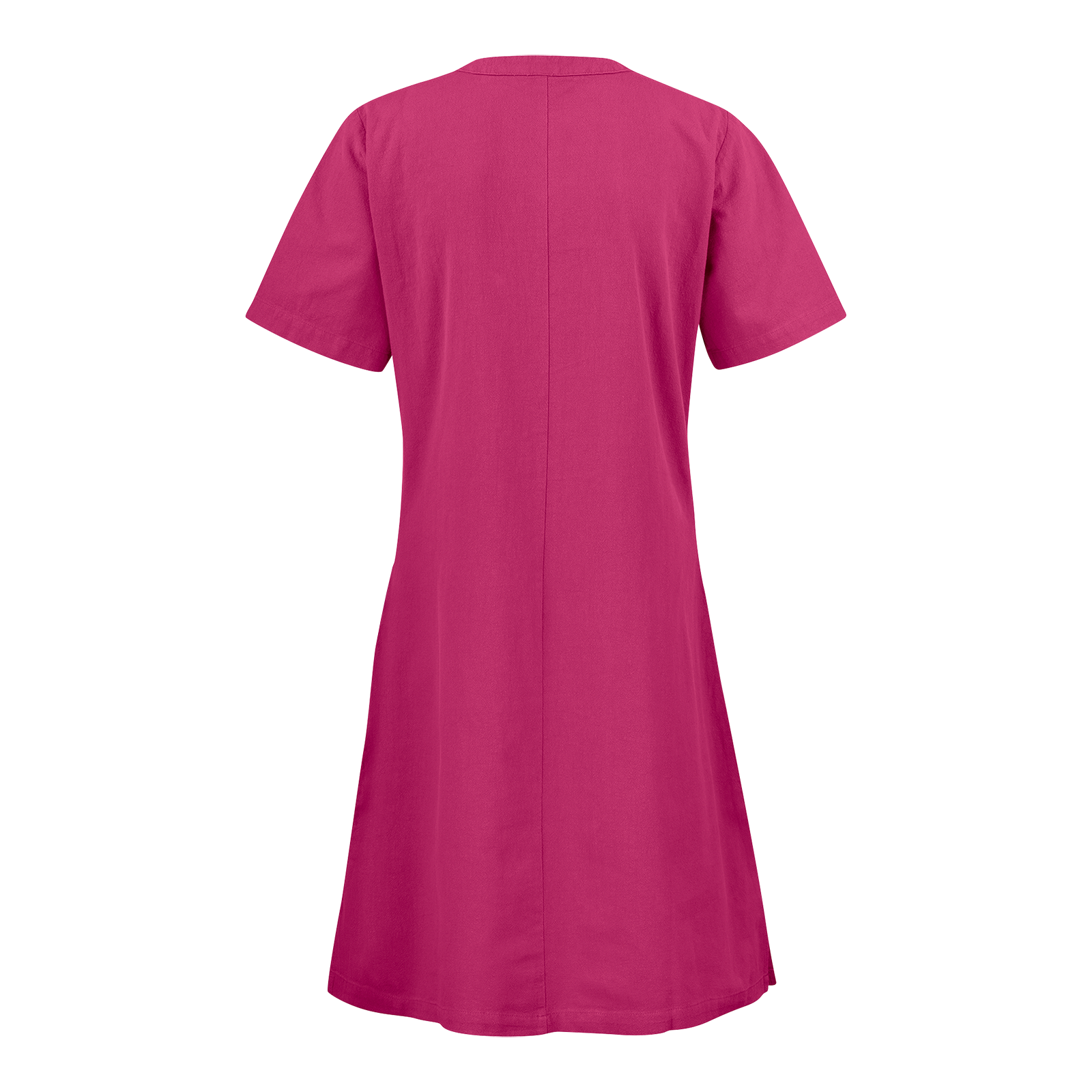 Kevyt kietaisumekko, jossa on V-aukko. Varustettu tilavilla etutaskuilla, joihin kuuluu avaimenpidike ja matkapuhelintasku sekä rintataskulla, jossa on rengasneppari ja kortinpidike. Leikattu sivulta. Poimutettua puuvillaa.