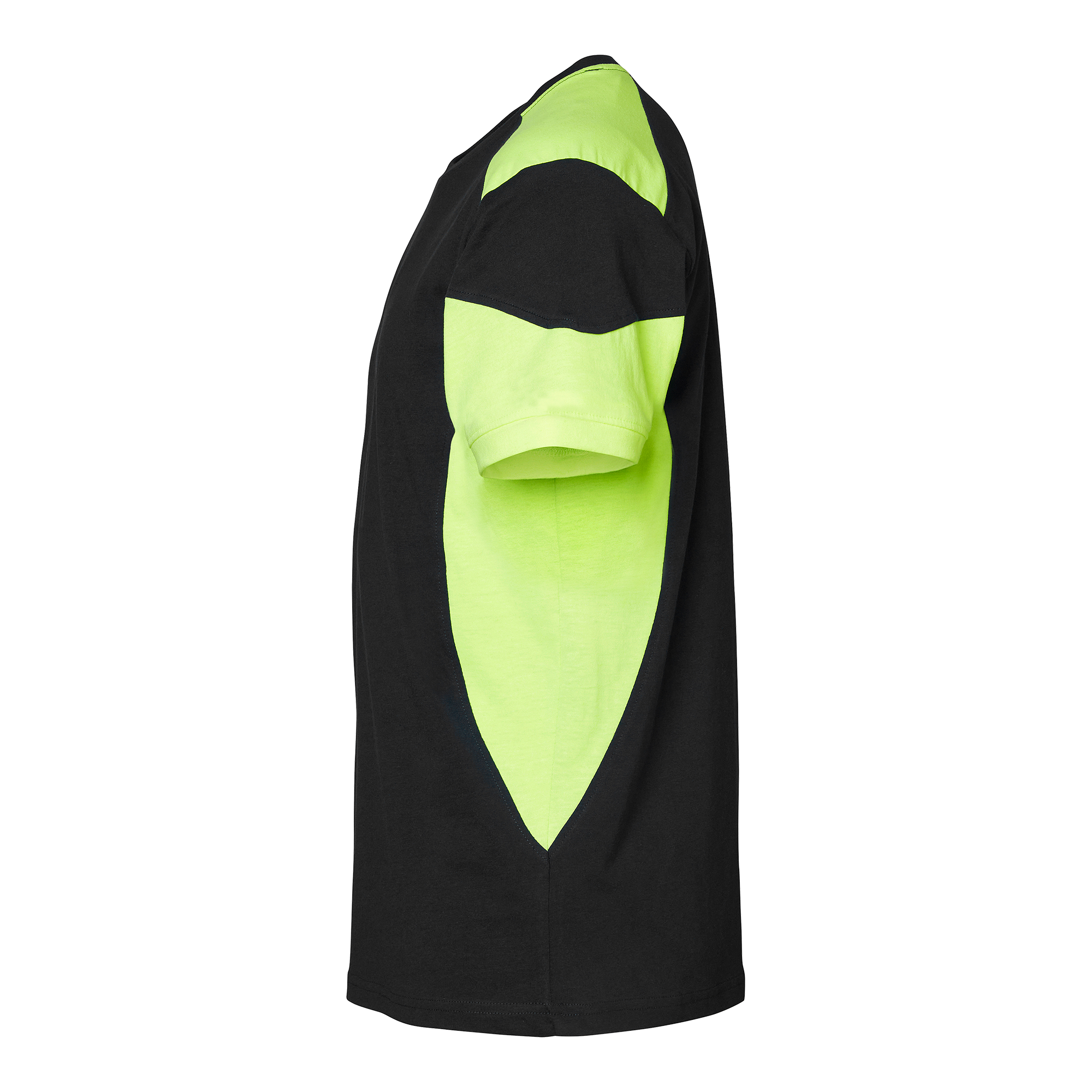 Top Swede huomio T-paita. Pyöreä kaula-aukko ja kaksinkertainen kaulanauha elastaanilla. Valmistettu puuvillan ja polyesterin sekoituksesta mukavan olon ja kestävyyden takaamiseksi. Sopii erityisesti rakennus- ja teollisuusalalle.