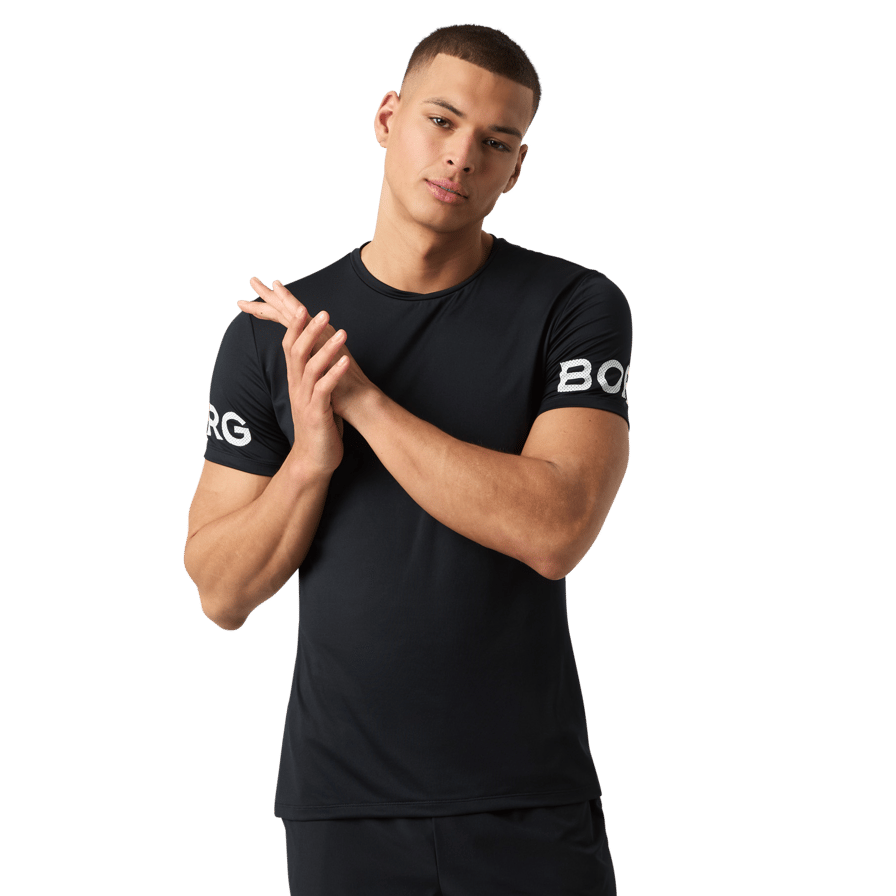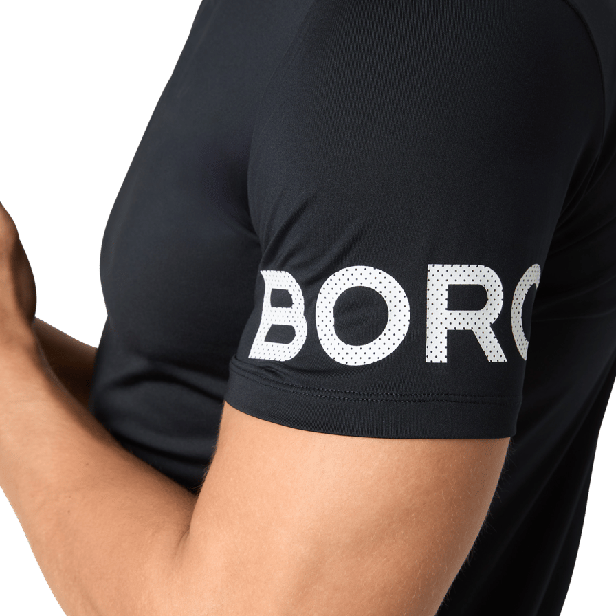 Björn Borg T-paita BB Logo on toiminnallinen t-paita, joka tuo mukavuutta harjoitteluun. Kierrätettyä polyesteriä ja elastaania sisältävä materiaali on ohutta, pehmeää ja joustavaa. Hydro Pro -materiaalista valmistettu paita siirtää kosteutta pois iholta. Säännöllinen istuvuus tarjoaa tilaa liikkua, ja hihojen Borg-painatus tuo mukavan yksityiskohdan.