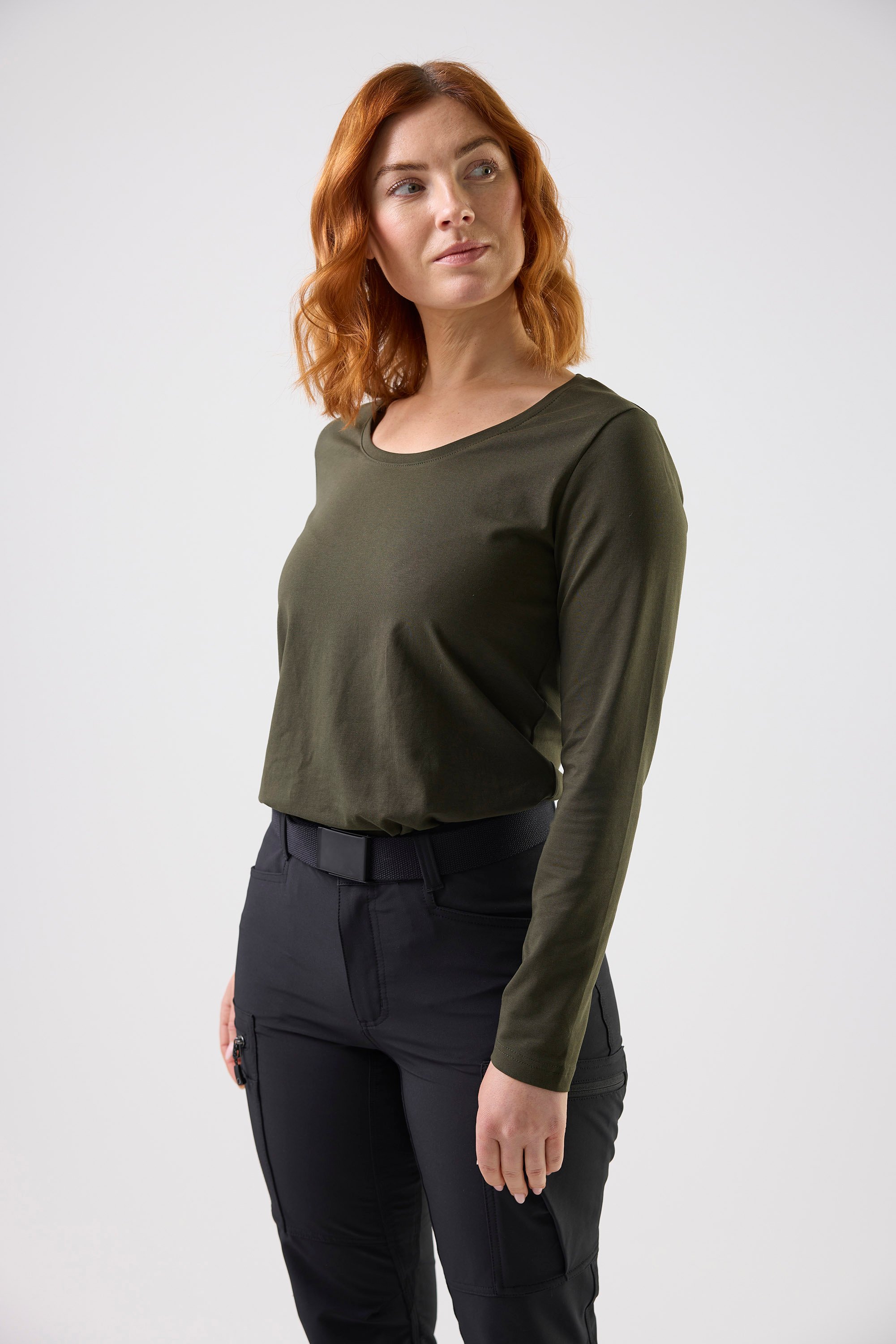 Pitkähihainen T-paita Reilun kaupan sertifioidusta puuvillasta, jossa on joustoa ja pyöreä, nauhalla huoliteltu pääntie. Vartalonmyötäinen istuvuus takaa tyylikkään ja mukavan ulkonäön, joka sopii täydellisesti sekä työhön että vapaa-aikaan.