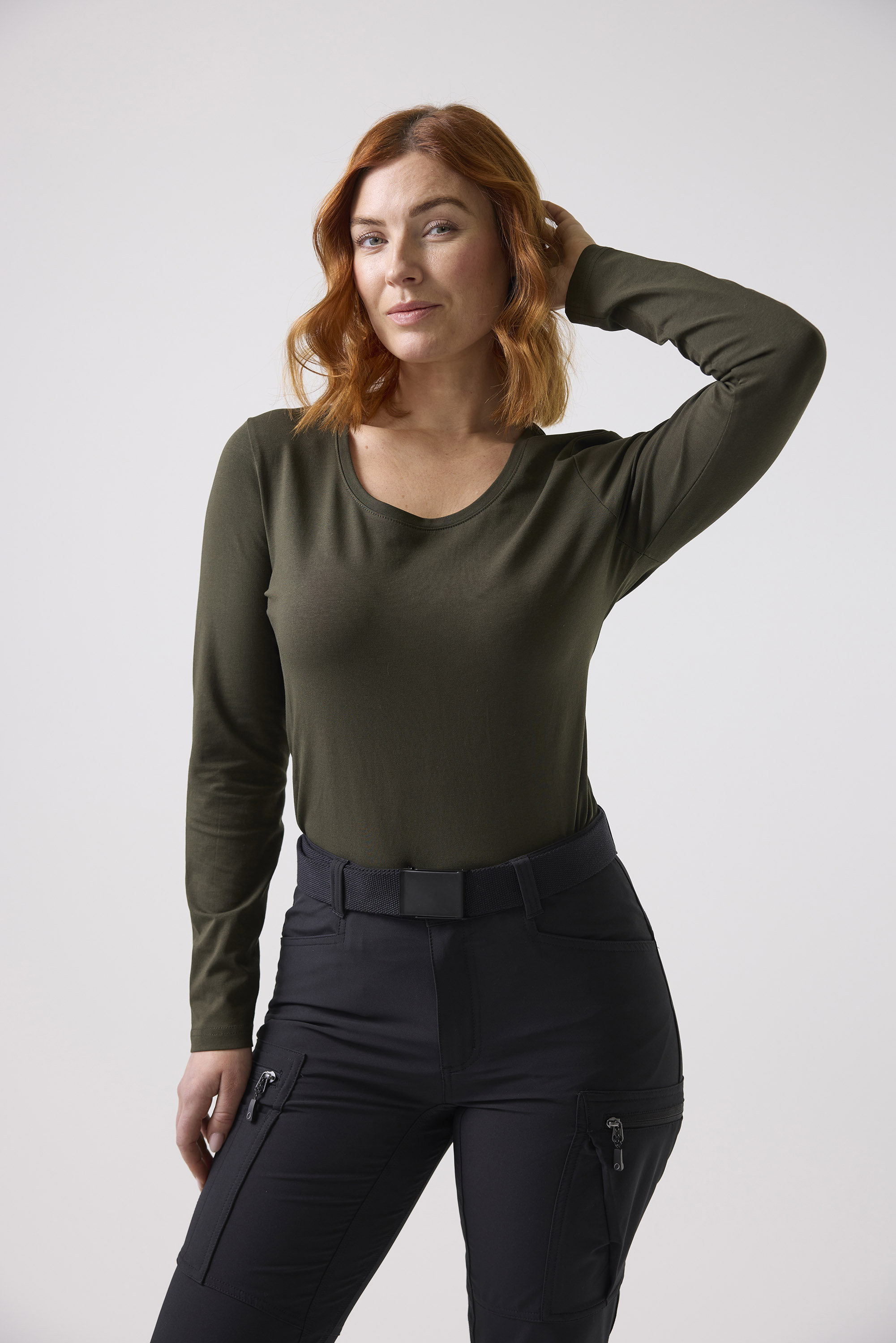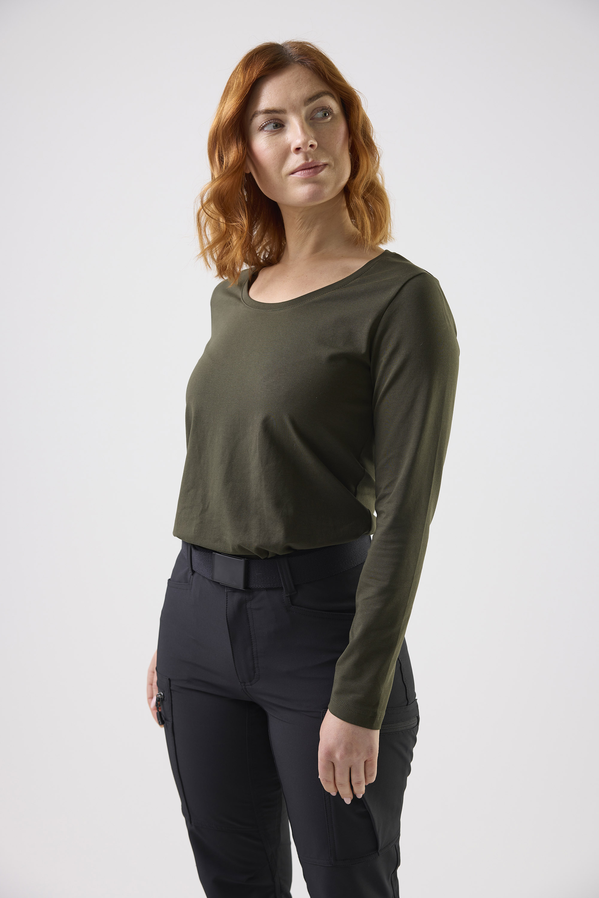 Pitkähihainen T-paita Reilun kaupan sertifioidusta puuvillasta, jossa on joustoa ja pyöreä, nauhalla huoliteltu pääntie. Vartalonmyötäinen istuvuus takaa tyylikkään ja mukavan ulkonäön, joka sopii täydellisesti sekä työhön että vapaa-aikaan.