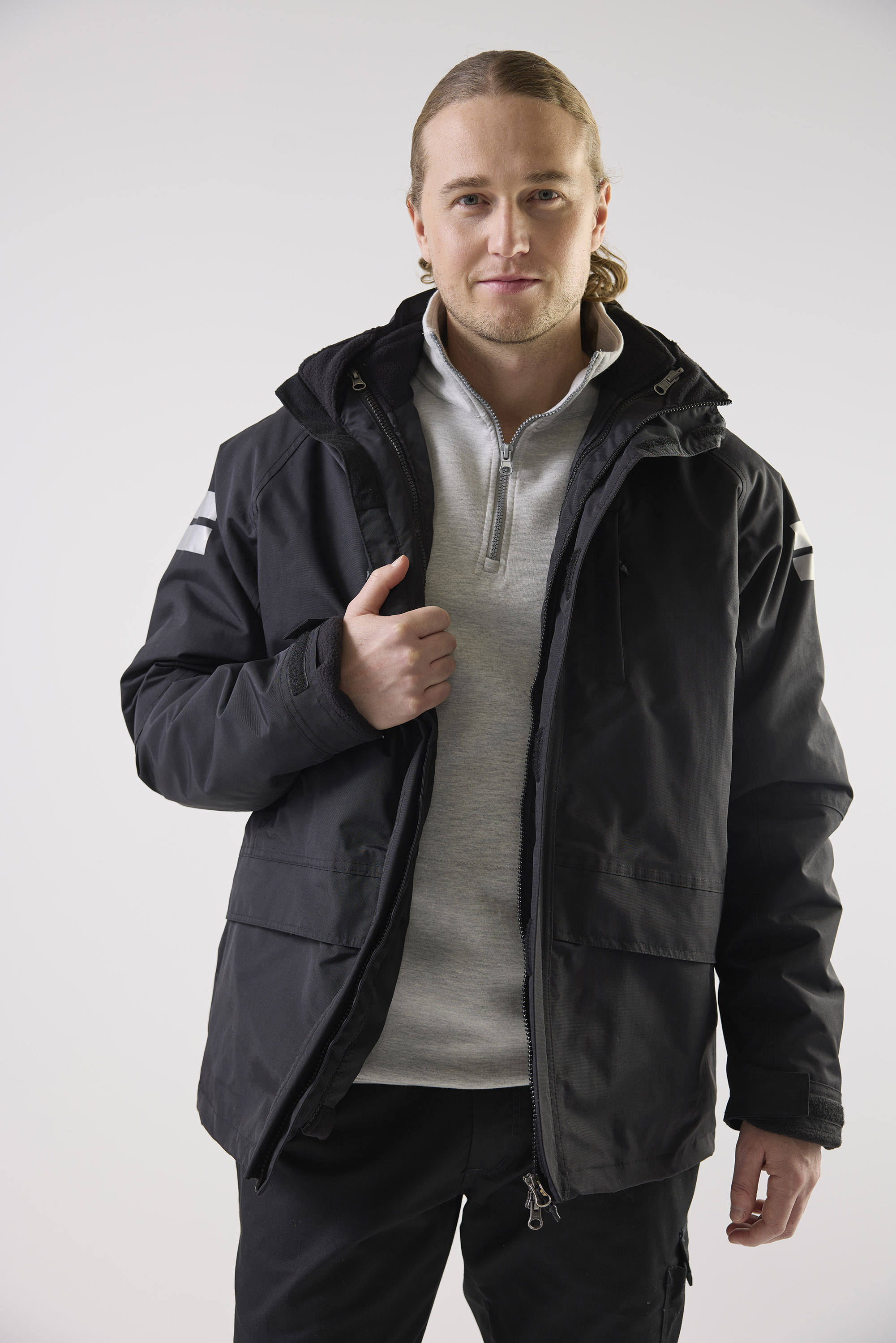 Top Swede 167 Parkaan, joka on 3-in-1-takki. Takki on tuulen- ja vedenpitävä, teipatuilla saumoilla varustettu, mikä varmistaa, että pysyt kuivana ja mukavana kaikissa sääolosuhteissa. Irrotettava sisätakki on valmistettu mikrofleecestä, ja sitä voidaan käyttää erikseen tai yhdessä ulkotakin kanssa. Heijastavat yksityiskohdat lisäävät näkyvyyttä ja turvallisuutta työpaikalla. Takissa on irrotettava huppu, säädettävät hihansuut sekä kiristysnauhat vyötäröllä ja helmassa mahdollistaen yksilöllisen istuvuuden. Takissa on kaksi vetoketjullista rintataskua, kaksi läpällistä ja vetoketjullista sivutaskua sekä sisätasku antaen runsaasti säilytystilaa. Top Swede tunnetaan korkeasta laadustaan, eikä tämä takki ole poikkeus. 167 Parka on suunniteltu vastaamaan ammattilaisten vaatimuksia, jotka tarvitsevat luotettavia ja toimivia työvaatteita.